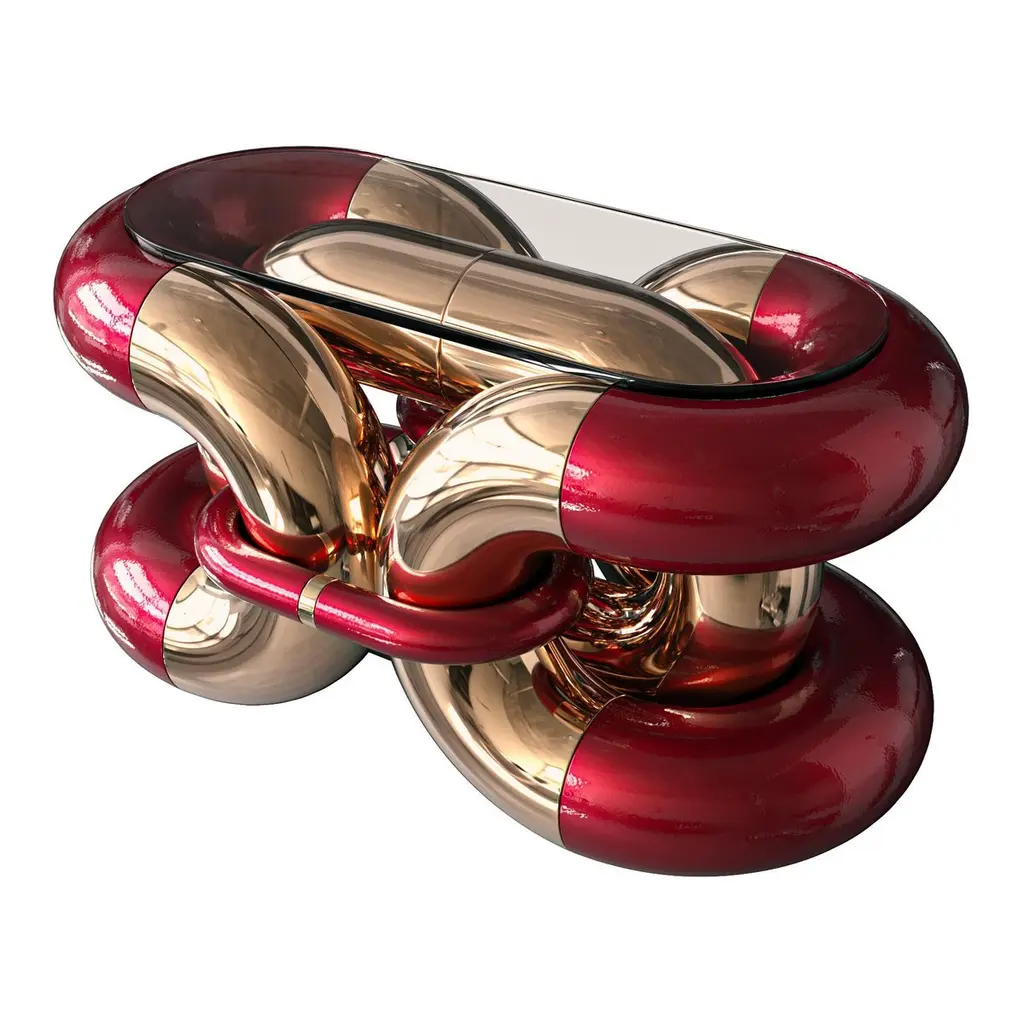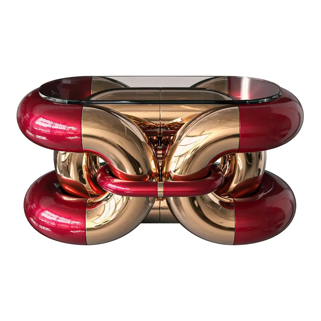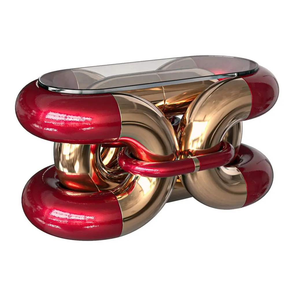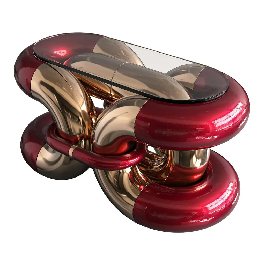 "Laylay" Coffee Table With Bronze, Stainless Steel, Handmade, Istanbul