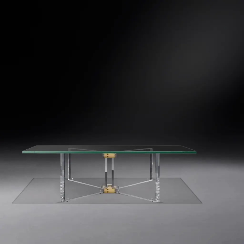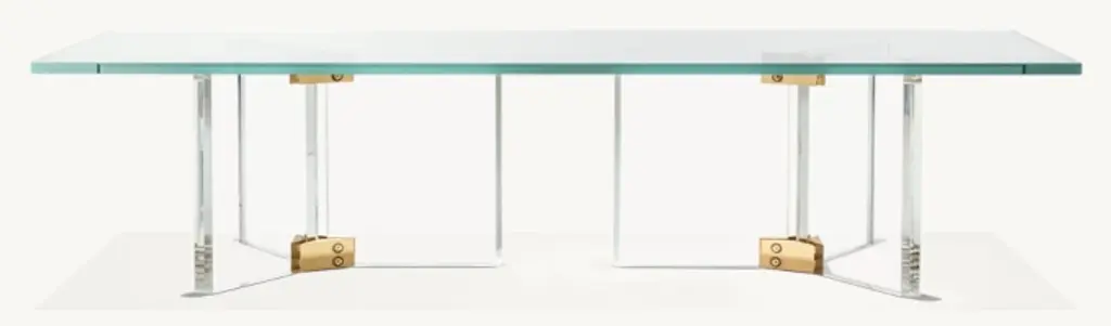 Inspired by 1970s Postmodernism, Lazio is an architectural pairing of acrylic and glass. Distinguished by the way transparent materials play with light, the table features a beveled acrylic Y-form base that supports a solid glass top. Constructed with minimal polished metal hardware, the sculptural silhouette alternately appears and recedes when viewed from various angles at different times of day.SHOP THE ENTIRE COLLECTION
