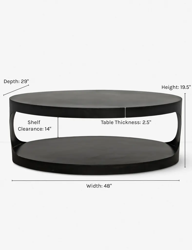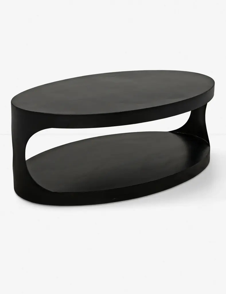 Our Leigha Coffee Table is the spark your living room has been missing. Whether you arrange it so that it's seen from the side or head-on, this oval metal table is like a work of art. The open two-tier design is both eye-catching and functional, providing visual interest and an extra spot to pile your favorite shelter magazines and living room coffee table books.