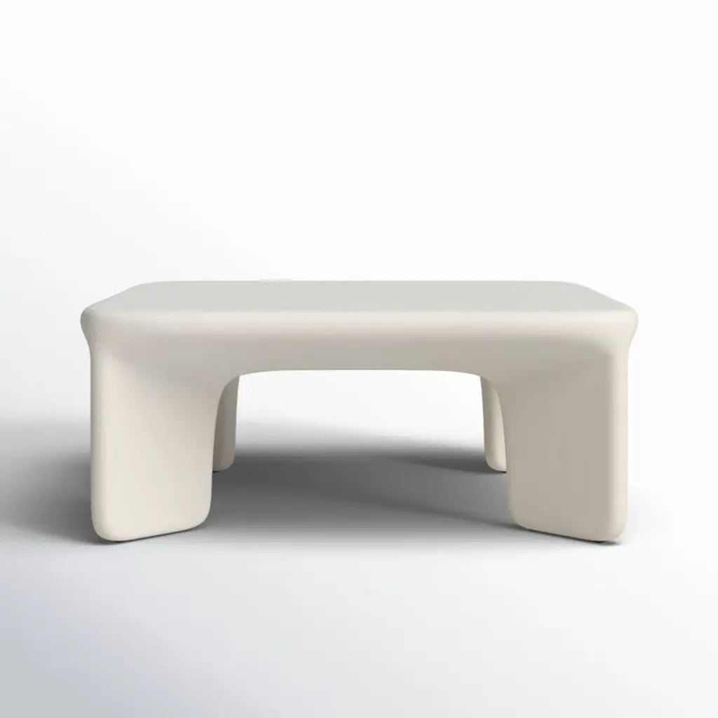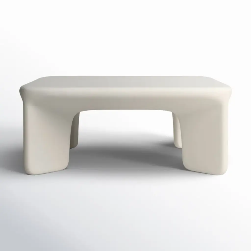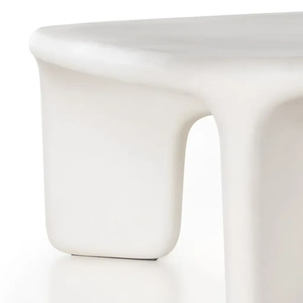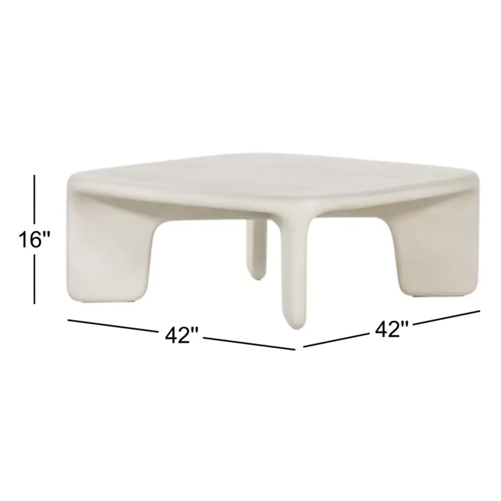 Adobe vibes. Made entirely from white-finished cast concrete, soft, chunky proportions lend a look of depth to this voluminous, uniquely sculpted coffee table. Indoors or out; cover or store inside during inclement weather and when not in use.