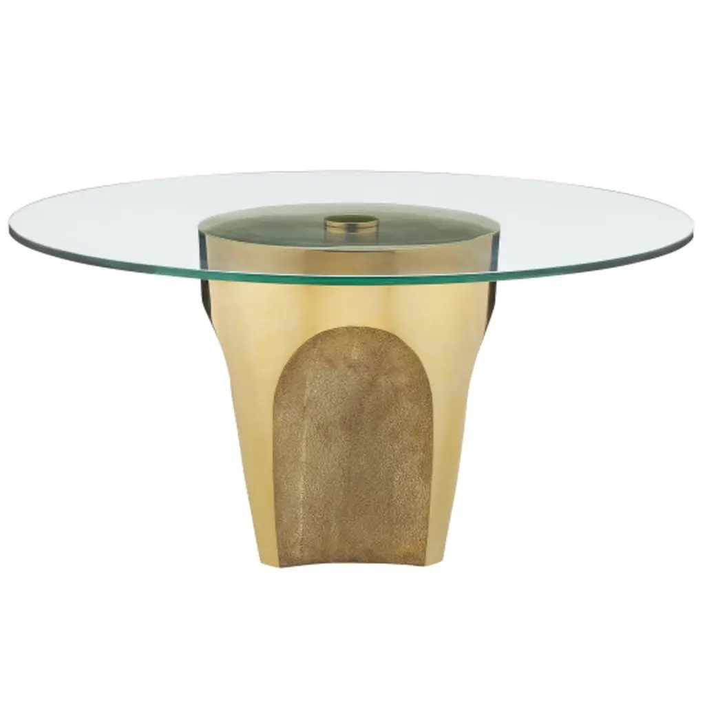 The Lemy Cocktail Table is a mix master of shapes and textures. Made of stainless steel, the cocktail table has textural indentions that look as if they have been carved out of the metal. The contemporary piece is topped with a tempered glass top.