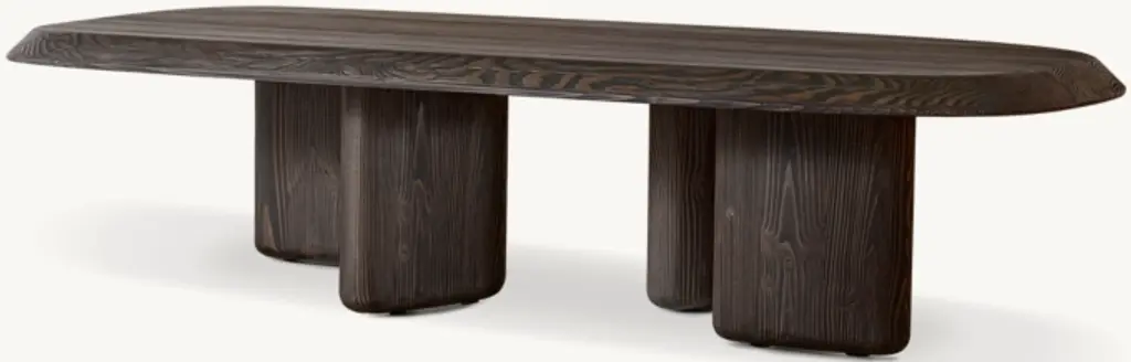 Handcrafted of Canadian Douglas fir, Leon by Harrison and Nicholas Condos is an exercise in balance and proportion. Artisans dry brush and sand the wood's surface to create a new and unique finish that adds deep texture to the natural grain pattern. The beveled-edge top is supported by asymmetrical legs for an organic profile with a bold presence. SHOP THE ENTIRE COLLECTION