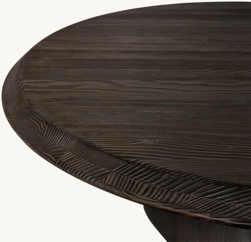 Handcrafted of Canadian Douglas fir, Leon by Harrison and Nicholas Condos is an exercise in balance and proportion. Artisans dry brush and sand the wood's surface to create a new and unique finish that adds deep texture to the natural grain pattern. The beveled-edge top is supported by asymmetrical legs for an organic profile with a bold presence. SHOP THE ENTIRE COLLECTION