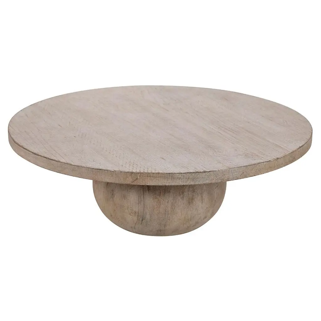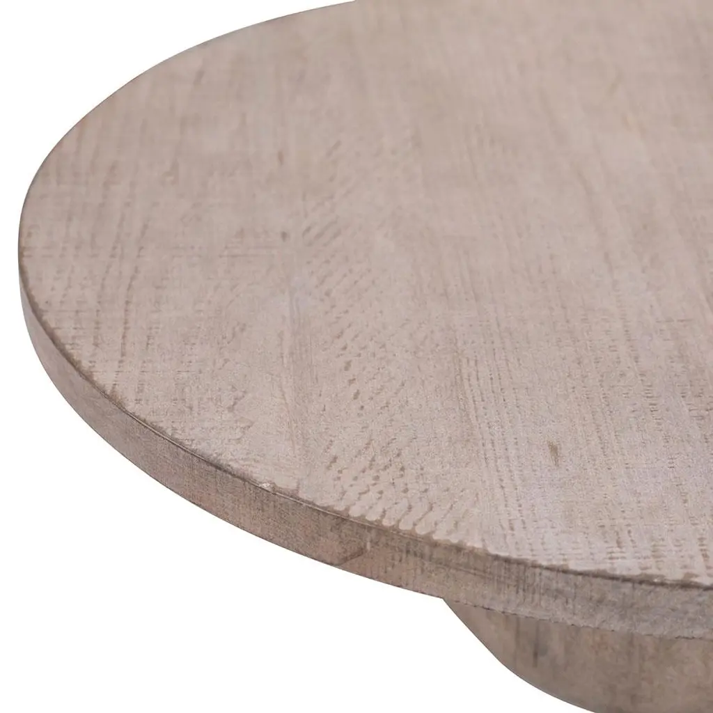 The eco-friendly Leonardo coffee table is carefully crafted from reclaimed pine wood in a warm light brown washed finish. With a curved top and circular base, this balanced piece pairs beautifully with angular silhouettes, creating a harmonious look in your living space.