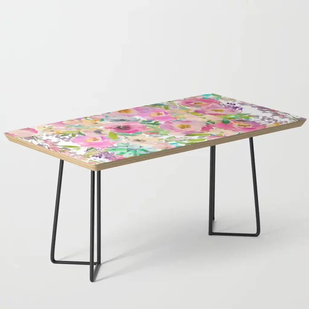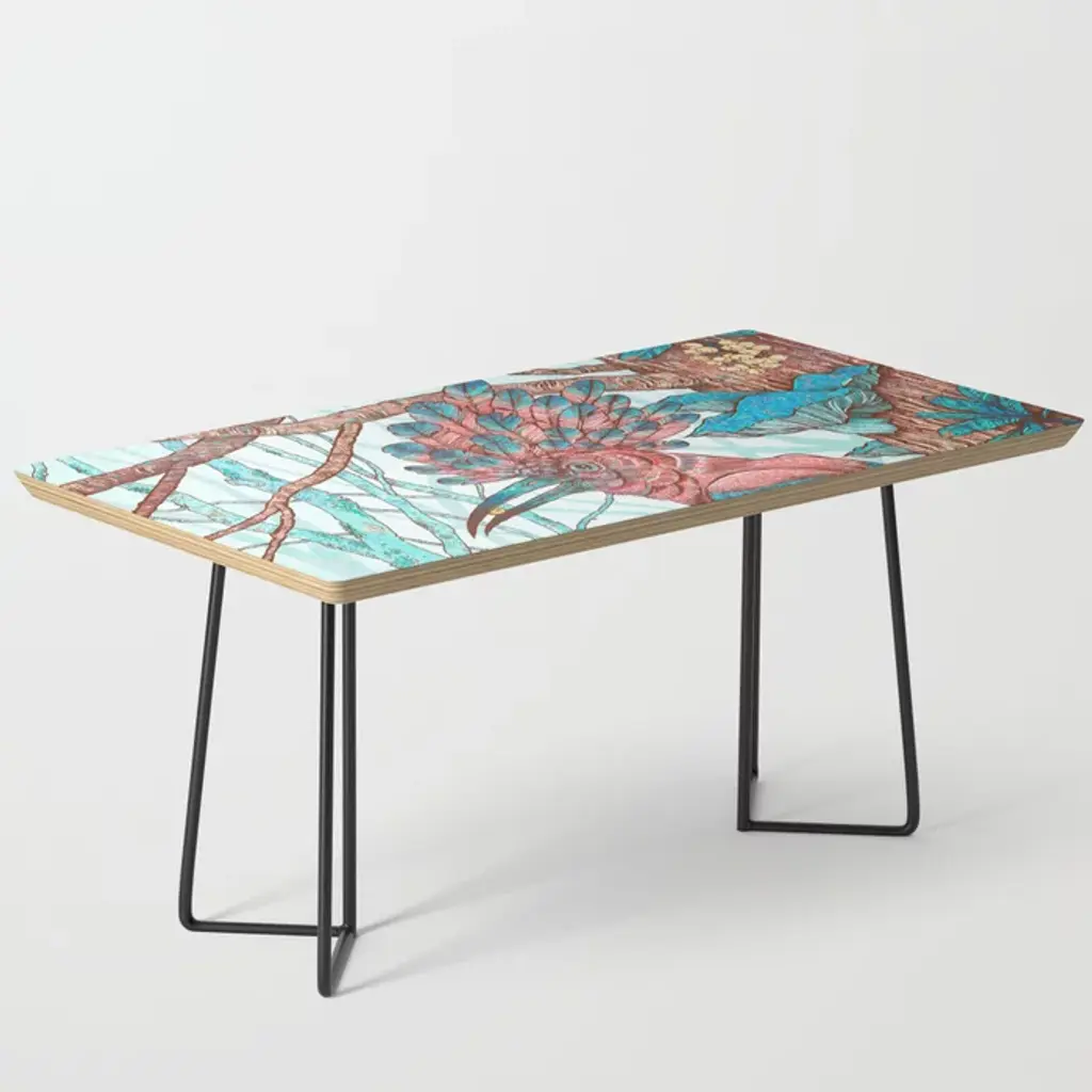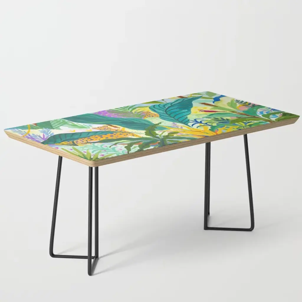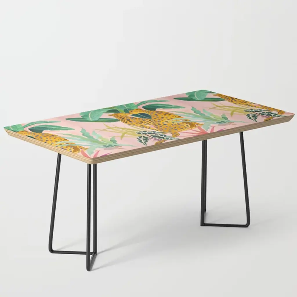 35.75" x 17.75" x 17" (H)Baltic birch table top with beveled edgeHigh quality print with satin finishSteel legs available in black or goldAssembly requiredEvery order is made just for youSHIPPING: Items are made to order and typically ship within 3-4 business days. Click here for more information about delivery options.Furniture sales are final. Click here for more information on returns.