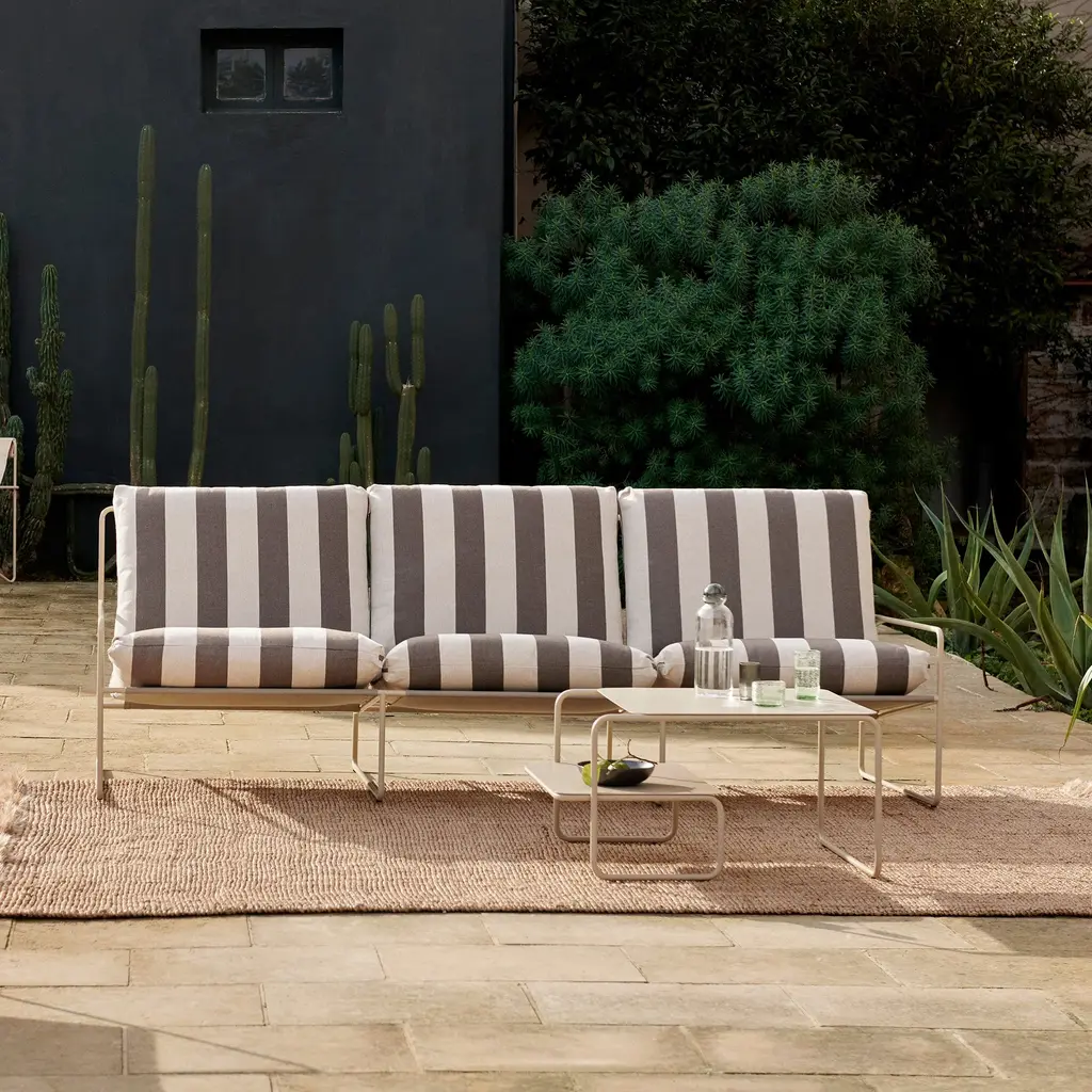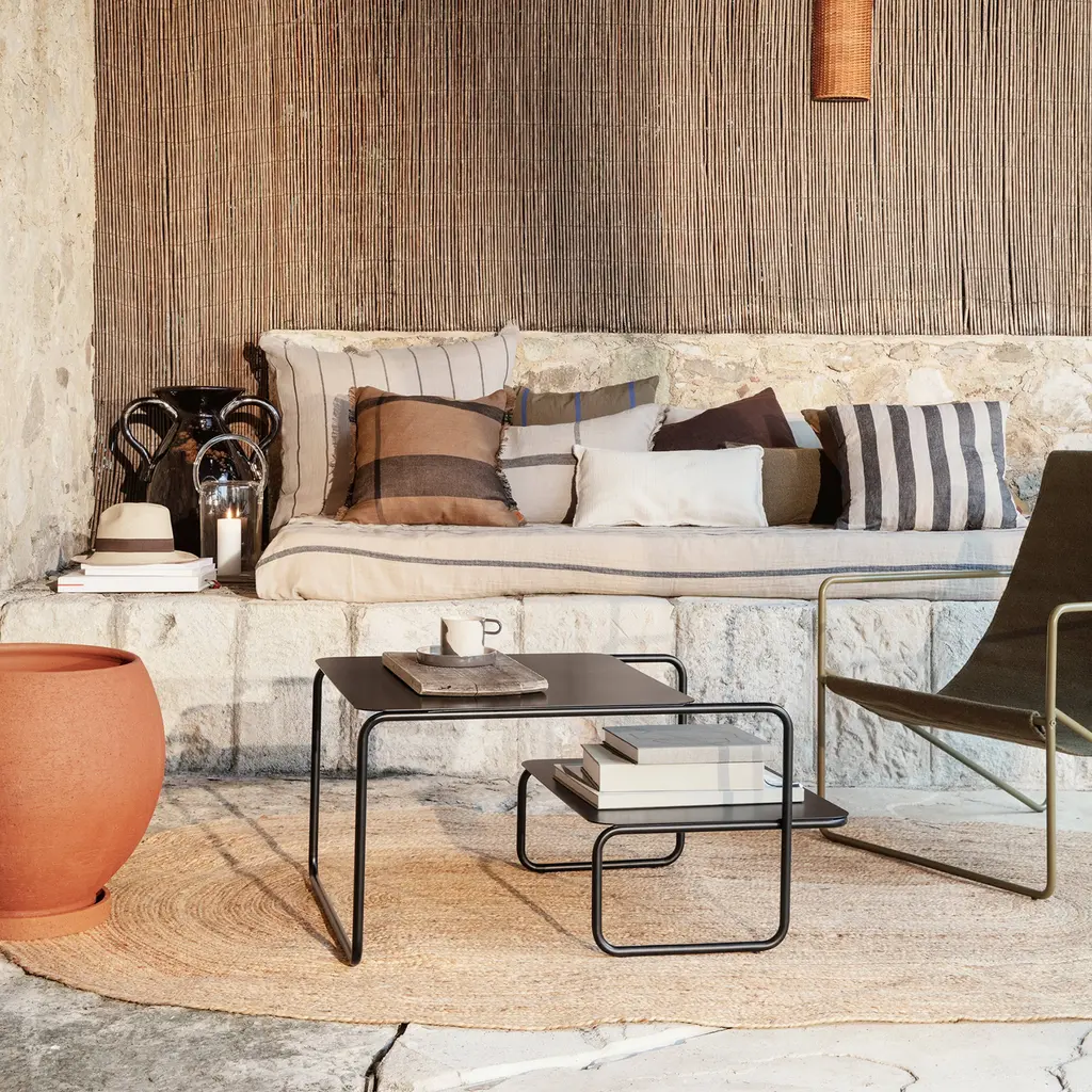 Level up — and down — with Ferm Living’s intriguing, asymmetrical coffee table. With 2 surfaces at different heights, it’s characterized by the single continuous line of its angular frame that holds the dual tabletops. Equally ideal for completing an outdoor lounge space or a living room, Level is crafted from powder-coated steel for carefree use both indoors and outdoors and comes in a choice of amenable hues.