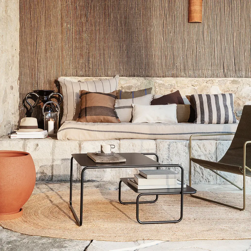 With its intriguing, asymmetrical profile, the Level Coffee Table is characterized by its distinctive frame made from a single continual line. With its modern expression and two levels that offer ample surface space, the table is ideal for completing either your outdoor lounge space or your living room. The coffee table is crafted from powder-coated steel and can be used both indoors and outdoors.