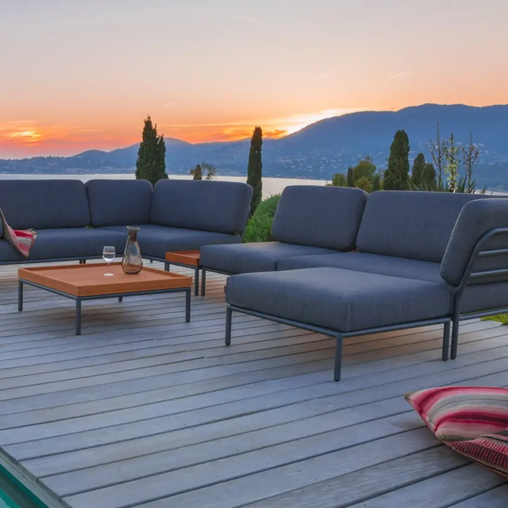 It's all about level, to come eye to eye with nature, to relate to the horizon and to get lines and shapes to move up to a higher level! The lightweight frame and soft cushions creates both contrast and comfort - and lures with relaxed lounge atmosphere. LEVEL is a lounge series consisting of 2 sofa modules - one left and one right - a single chair , an ottoman , a coffee table and a side table , which makes it possible to mix the modules in many different ways. Assembly required.