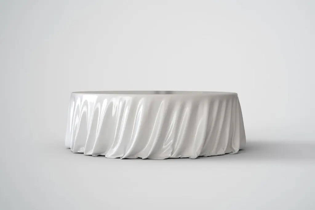 The Levitaz Round Coffee Table, finished in a White Gloss automotive finish, exemplifies modern sophistication with its elegant design and meticulous craftsmanship. This piece, sculpted from high-strength resin reinforced with carbon fiber, achieves a fluidity that echoes soft fabric draping effortlessly over the table's circular form. Its design concept leverages the classical drapery techniques seen in Renaissance sculptures, reimagined through a contemporary lens to create a table that appears enrobed in a flowing, seamless cloth. This illusion is achieved through advanced molding techniques in high-strength resin, allowing the fine details of textile-like folds to be captured in solid form. The table's design not only challenges the traditional aesthetic of rigid furniture but also evokes a sense of movement and softness, making it a profound statement piece that harmonizes with the clean, modern lines of contemporary living spaces.This conceptual design transcends traditional form, presenting a functional piece of furniture as an evocative work of art. The seamless curves and the gleaming, reflective finish enhance the visual perception of depth and movement, making this table not merely an object within a space but a pivotal design element that shapes the aesthetic and atmosphere of its environment. The Levitaz Table is a profound statement in the exploration of form, combining classical influences with cutting-edge fabrication techniques to achieve a striking balance of old-world elegance and contemporary design.