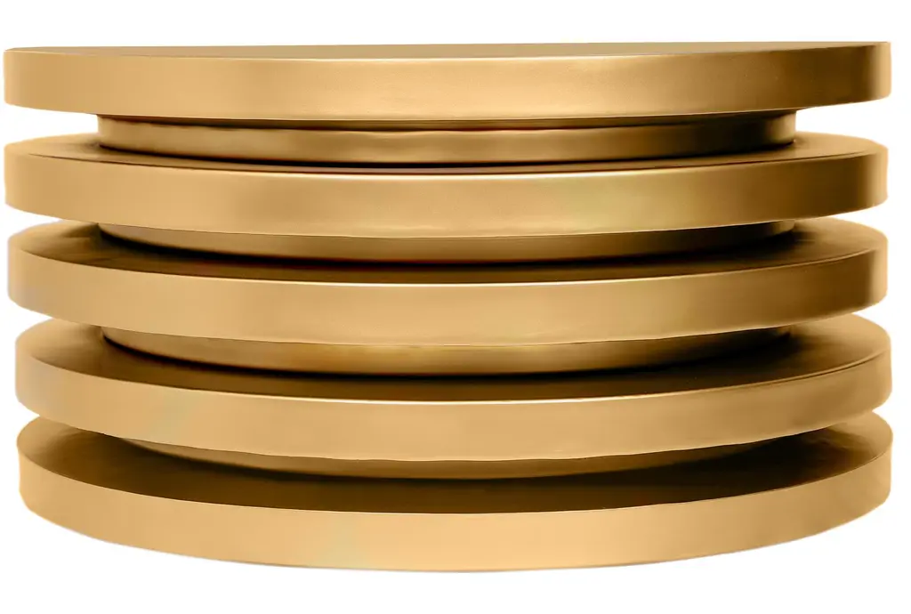 Lianna Modern Gold Metal 34" Round Stacked Drum Coffee Table