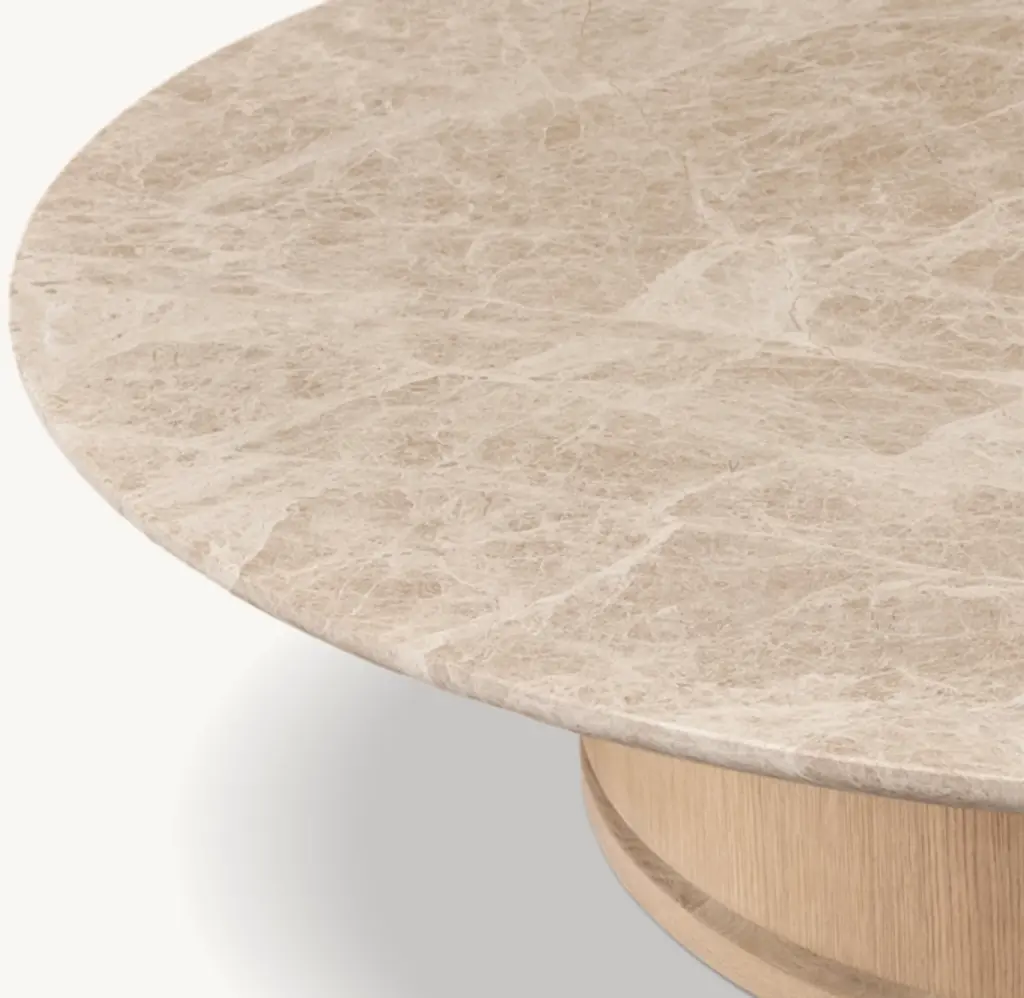 Designed by Julie Lawrence of Roanoke, Virginia, Ligné is handcrafted of American white oak and richly veined marble, each corner wrapped with elegant radius curves. A wire-brushed finish highlights the wood's natural grain, while a slender plinth enhances the understated architectural profile. SHOP THE ENTIRE COLLECTION
