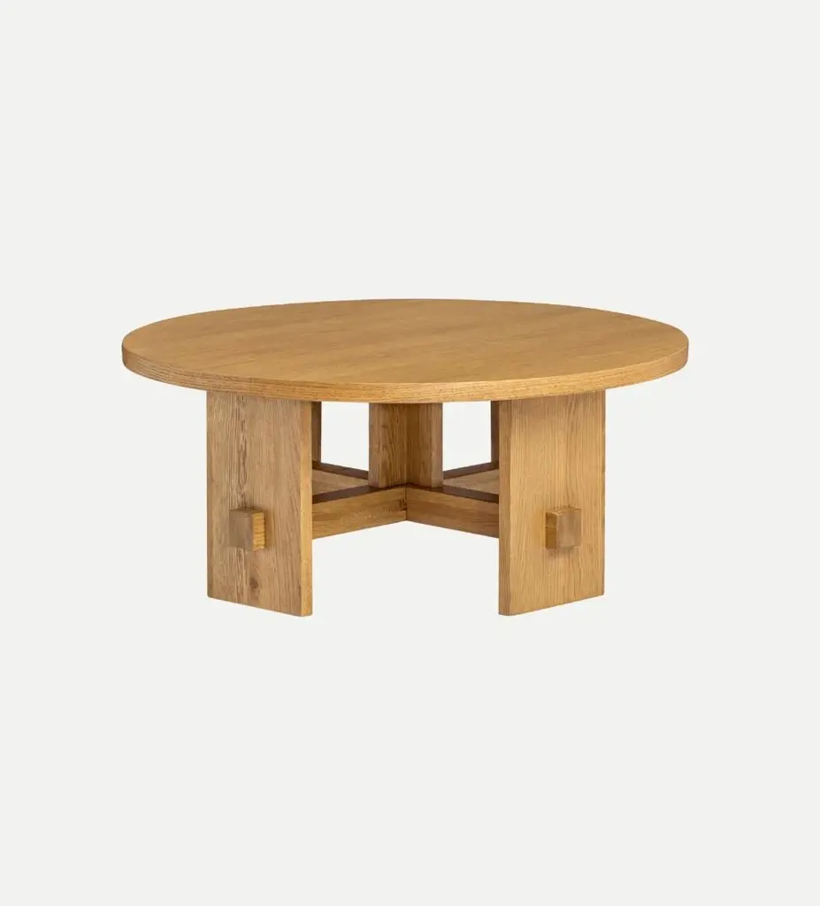 Lika Solid Wood Oak, Walnut Solid Wood Detailed Round Coffee Table
