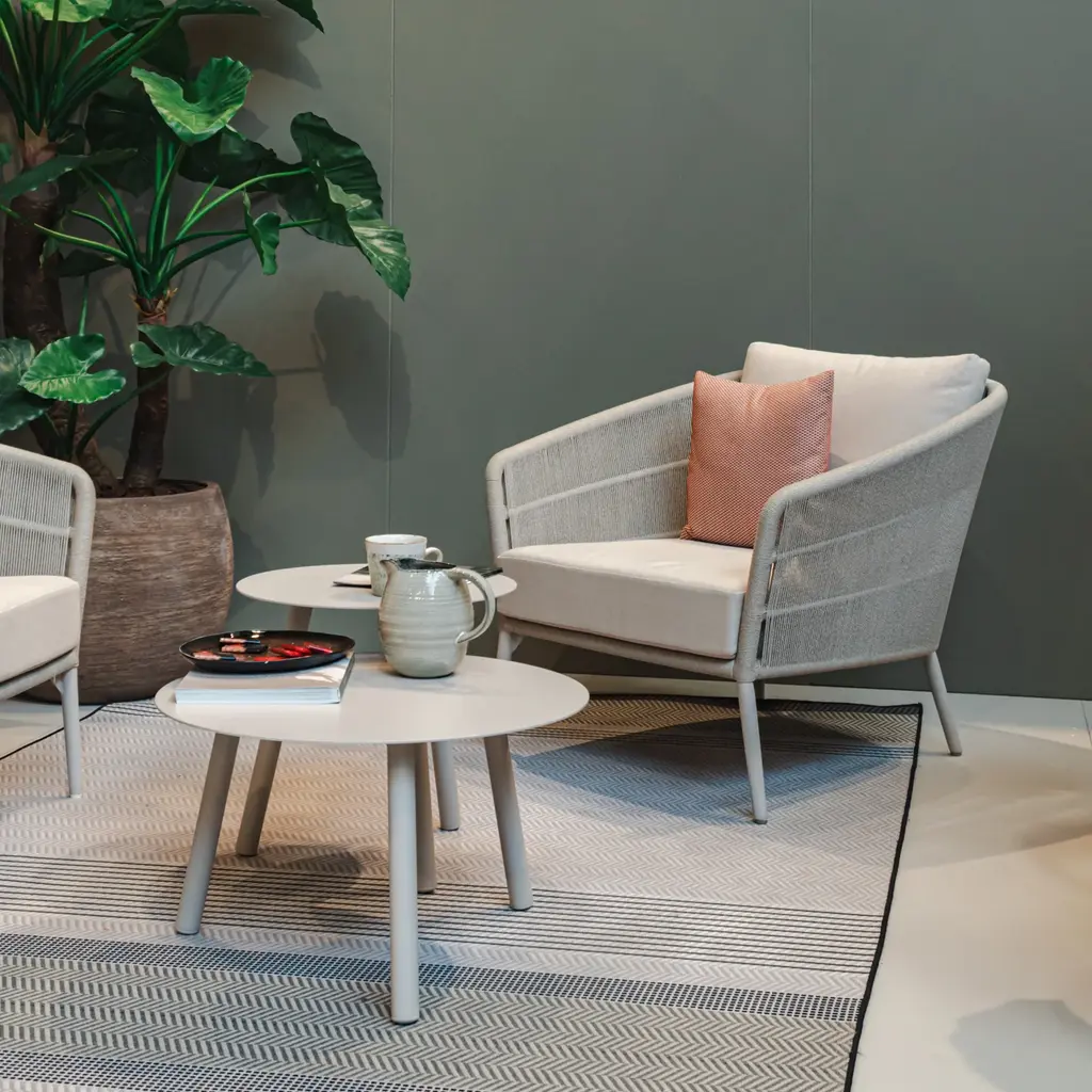 Elevate your favorite lounge space with the Lilo Outdoor Round Coffee Table from Vincent Sheppard. Crafted from lightweight and durable aluminum, this three-legged tables seamlessly blends elegance and functionality. Available in various sizes and colors, it offers versatility and a modern aesthetic for poolside patios and garden seating spaces alike. Mix and match to create a personalized and luxurious setting. Highlights