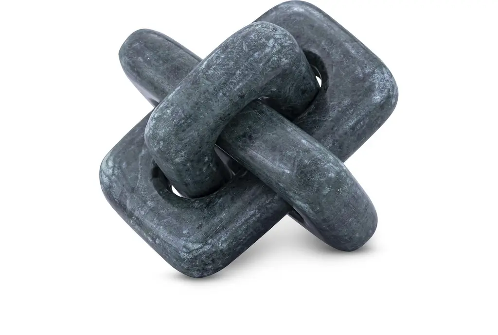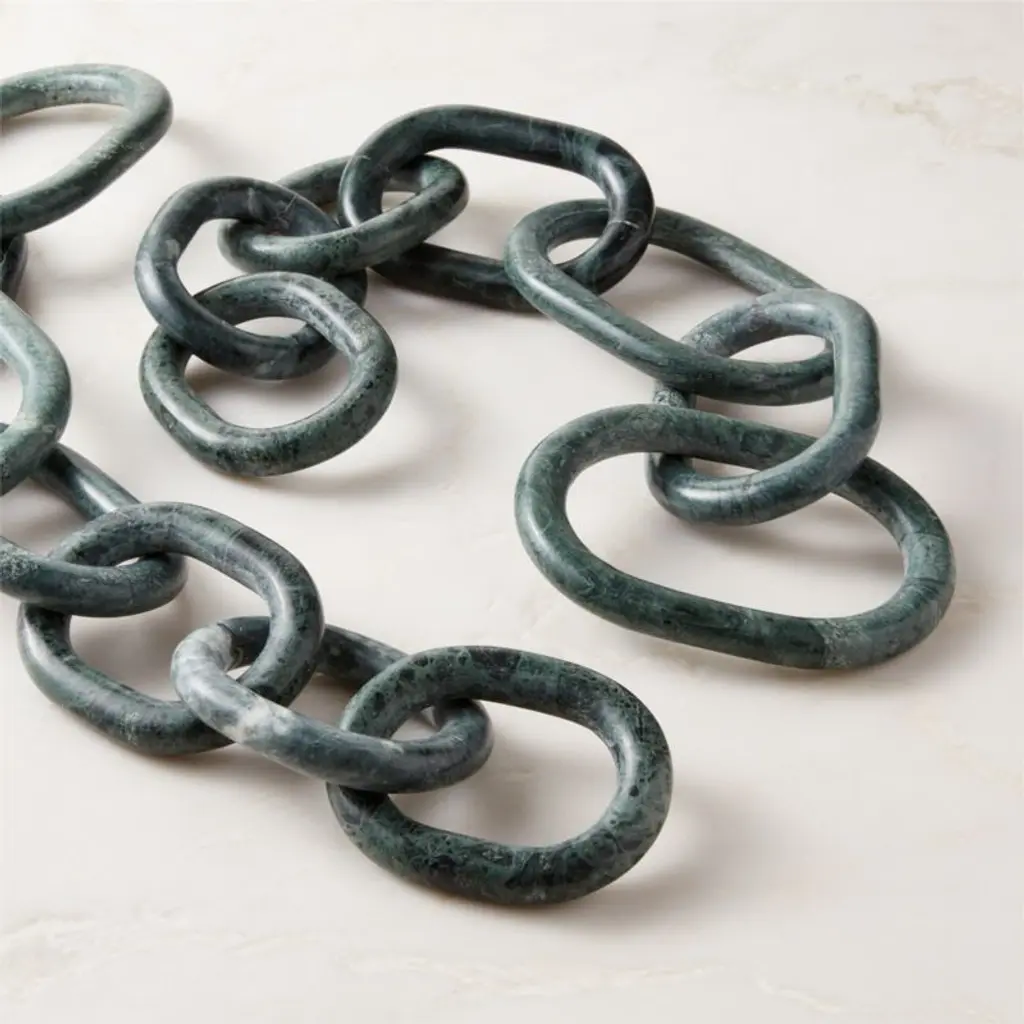 Gathered in a bowl or draped over a stack of coffee table books, rich green marble links up as a decorative chain. With subtle white veining, solid green marble shapes seven links of varying sizes. CB2 exclusive.