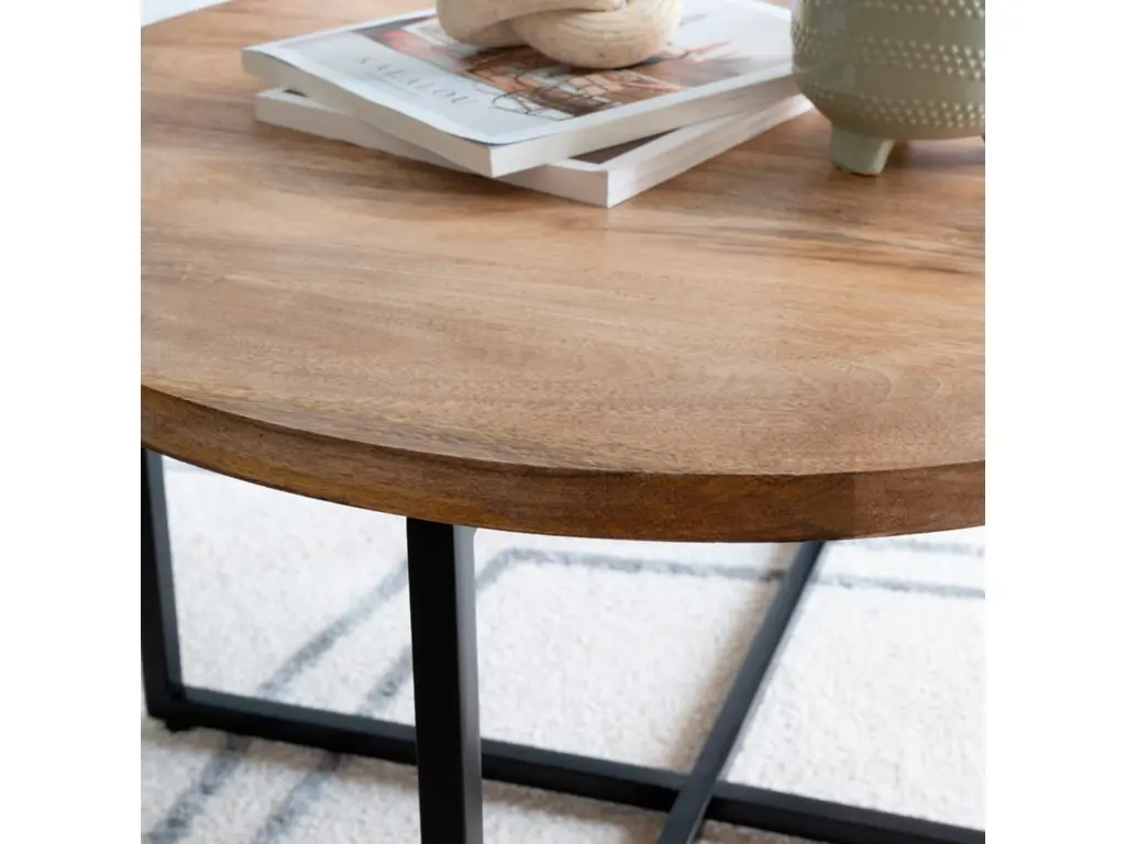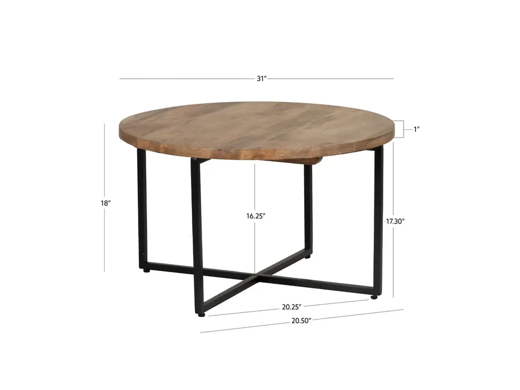 Add a touch of industrial rustic charm to your living space with our nesting coffee table. Crafted with a sturdy, powder-coated black iron frame and a natural mango wood top, this table combines durability with style. Measuring 31" L x 31" D x 18" H