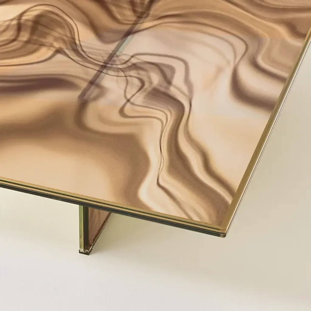 The Liquefy Square Coffee Table from Glas Italia displays dramatic textures, fusing artistry and architectural clarity. Designed by architect Patricia Urquiola, its Tempered Extralight Glass surface features dynamic, fluid patterns that recall marble veining and rippling water. Framed by slim painted borders, each pane’s visual depth and distinct character contrasts beautifully with its straightforward structure. A great centerpiece for open-plan living rooms, the angular intersections add shadow and texture, while the flat top provides ample surface area without dominating its surroundings.