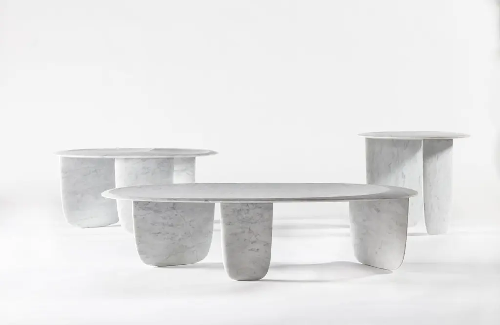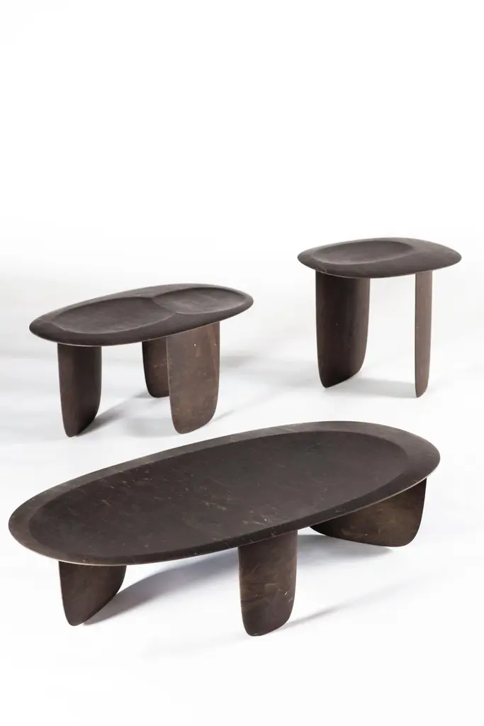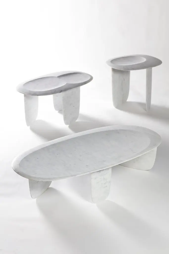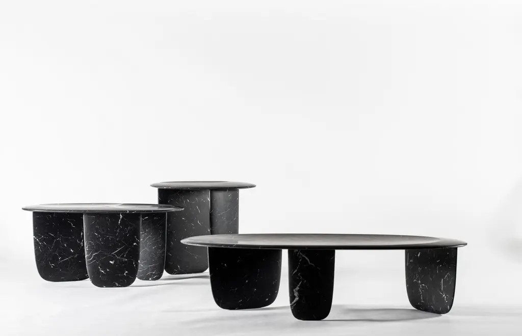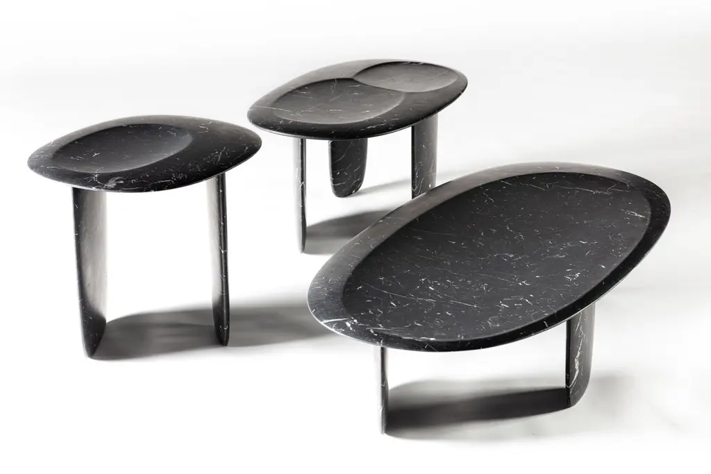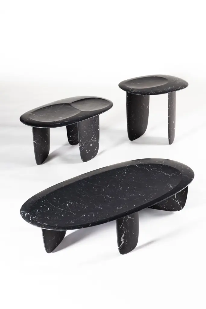 Sesi A, B, C set of number 3 coffee tablesMaterials: Nero Marquinia, Bianco Carrara, Pietra PeceDimensions:SESI A 100x50x H26 cmSESI B 65x40x H32 cmSESI C 45x40x H40 cm.