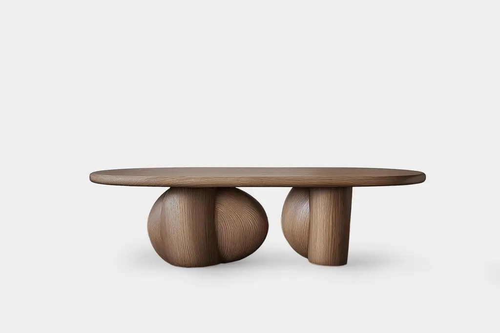 Living Room Coffee Table Serie 55 – Sereno by NONO in Solid Wood———Sereno Coffee Table Series – A Note from Joel EscalonaWhat happens when structure becomes art?These are the questions that guided me in designing the Sereno Coffee Table Series. I wanted to create pieces where beauty wasn’t just about what you see on the surface but also about how things come together—the hidden elements that often go unnoticed but are essential to balance and harmony.With Sereno, the story lies beneath. The tabletop is minimal and clean, but the legs—sculpted like soft, wooden pebbles—are the soul of the design. These organic shapes are carefully placed to support the structure, giving the table a subtle presence, as if it’s effortlessly floating just above the ground. Each pebble leg is different, creating a sense of individuality that reflects the natural variations found in the world around us.For this collection, I chose to work exclusively with solid wood because I believe in the honest beauty of natural materials. You can select red oak with a natural finish, or explore tinted variations to match your space. For those seeking a richer expression, walnut or white oak are available as premium options. Each piece feels tactile, solid, and timeless—something you’ll want to touch and live with every day.The Sereno Coffee Tables come in a range of shapes—round, oval, or rectangular—designed to complement any environment. Whether your space is minimal or eclectic, these tables will feel at home without demanding attention. They’re complete as they are, with or without objects, bringing a sense of calm wherever they are placed.With Sereno, my goal was to create pieces that embody balance, simplicity, and subtle artistry—tables that feel meaningful not because they are heavily adorned, but because they are thoughtfully crafted. At the heart of this collection is the belief that great design doesn’t need to shout; it just needs to feel right.I hope these tables bring a sense of quiet beauty to your home, transforming ordinary moments into something extraordinary.—NONO is a Mexican design brand with more than 10 years of experience dedicated to the production of interior furnishings, editions, and custom-made projects. At NONO, we create pieces of extraordinary beauty, accommodating the particular needs and tastes of each client with exclusive high-quality designs.————Some details to consider when placing an order with us:• Catalog images are digitally generated. Actual products may slightly vary in texture, grain, and final finish due to natural material differences. Despite these variations, our expertise ensures each piece maintains high quality and matches the intended design.• All of our products are made to order, and the lead time for standard products is estimated to be 9 to 12 weeks, plus shipping time. However, special pieces or sculptures may require a longer lead time.• We offer customization in dimensions and finish for all of our furniture pieces, which may result in additional charges.• We only facilitate freight services by a third party. The client is solely responsible for any associated import/export taxes, as well as any necessary customs paperwork.• We are not responsible for any damages that may occur during shipping or for any customs-related delays.