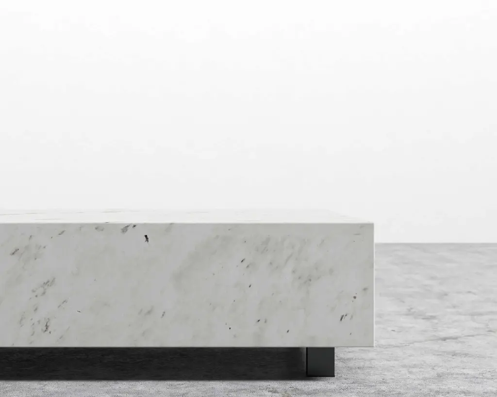 The Liza Coffee Table brings form and function to the modern home. With its clean and simple, low-profile design, the Liza anchors any space. Made of beautifully polished Carrara marble and striking matte black metal legs, the Liza creates an airy float-like feel to any living space.