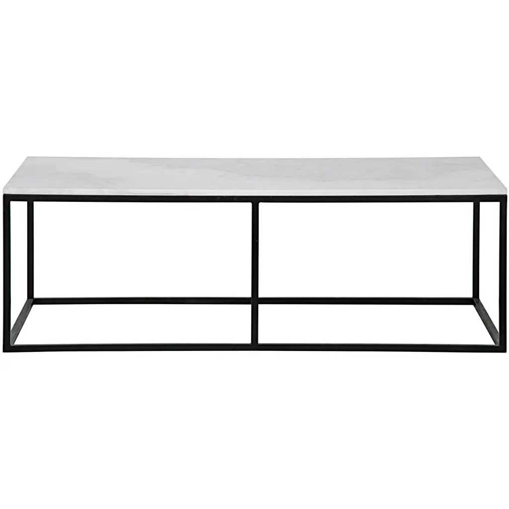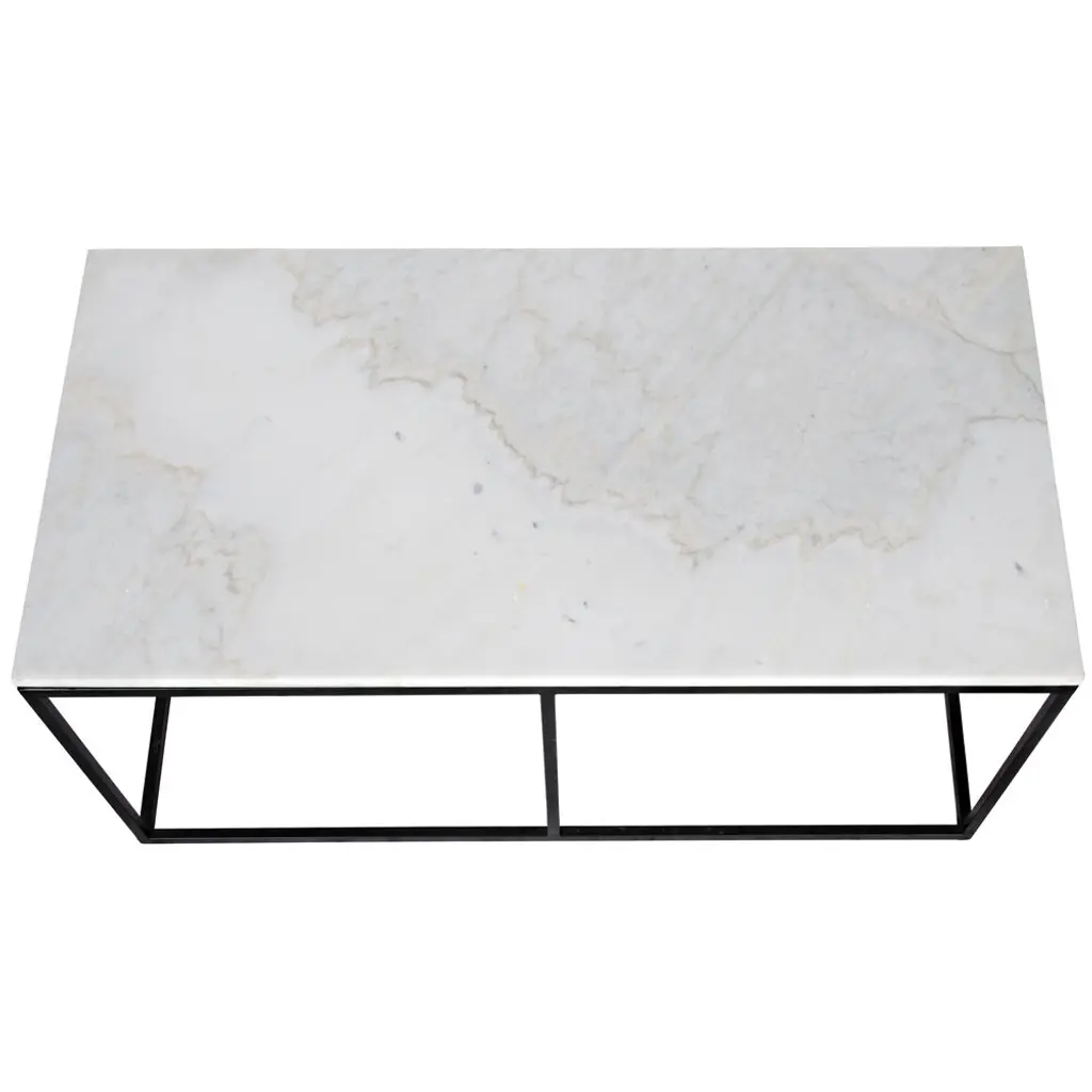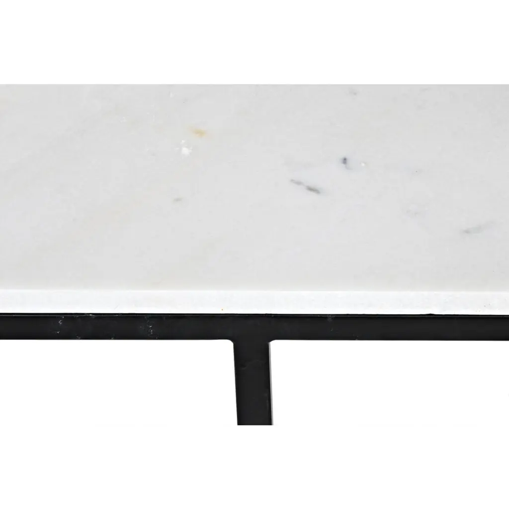 A slim, simple metal frame takes a background role in this piece, in deference to the star of the show, the striking slab of marble it supports.