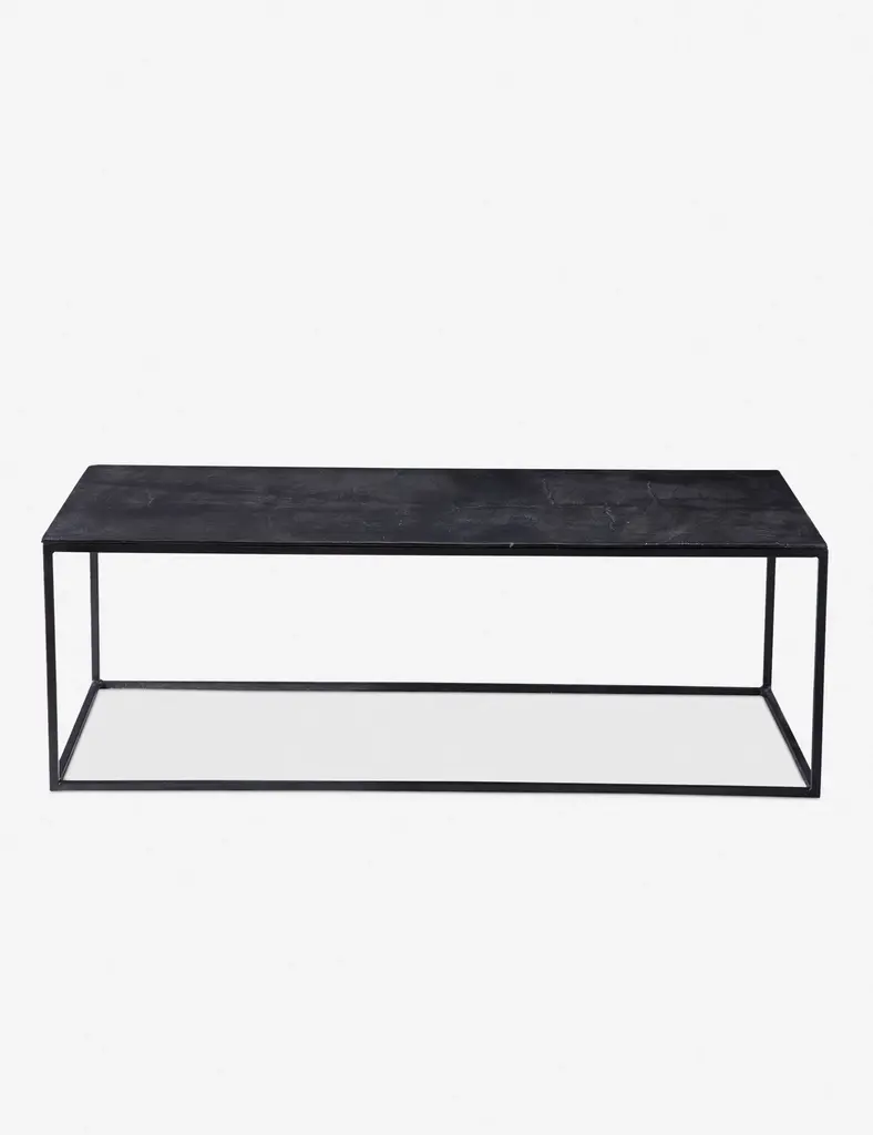 A must for spaces with a modern look, this coffee table features simple black legs and a sleek rectangular design, topped with a textured aluminum slab for an industrial twist.