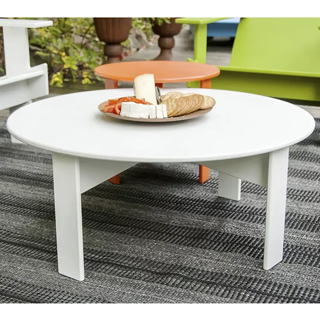 A simple, sophisticated piece designed to endure for seasons to come. Create a festive, relaxed environment with the Lollygagger Outdoor Round Cocktail Table from Loll Designs anchoring your arrangements outdoors. This piece not only satisfies guests, but it also satisfies mother nature. Its high-density polyethylene material is made using 152 reclaimed milk jugs (High-density Polyethylene (HDPE). Through harsh rain and sun, this piece keeps its shape and its deep color. A handsome modern design based on geometry makes this a versatile piece fitting across a range of home styles. The circular tabletop offers plenty of space for thoughtful ornamentation and refreshments.