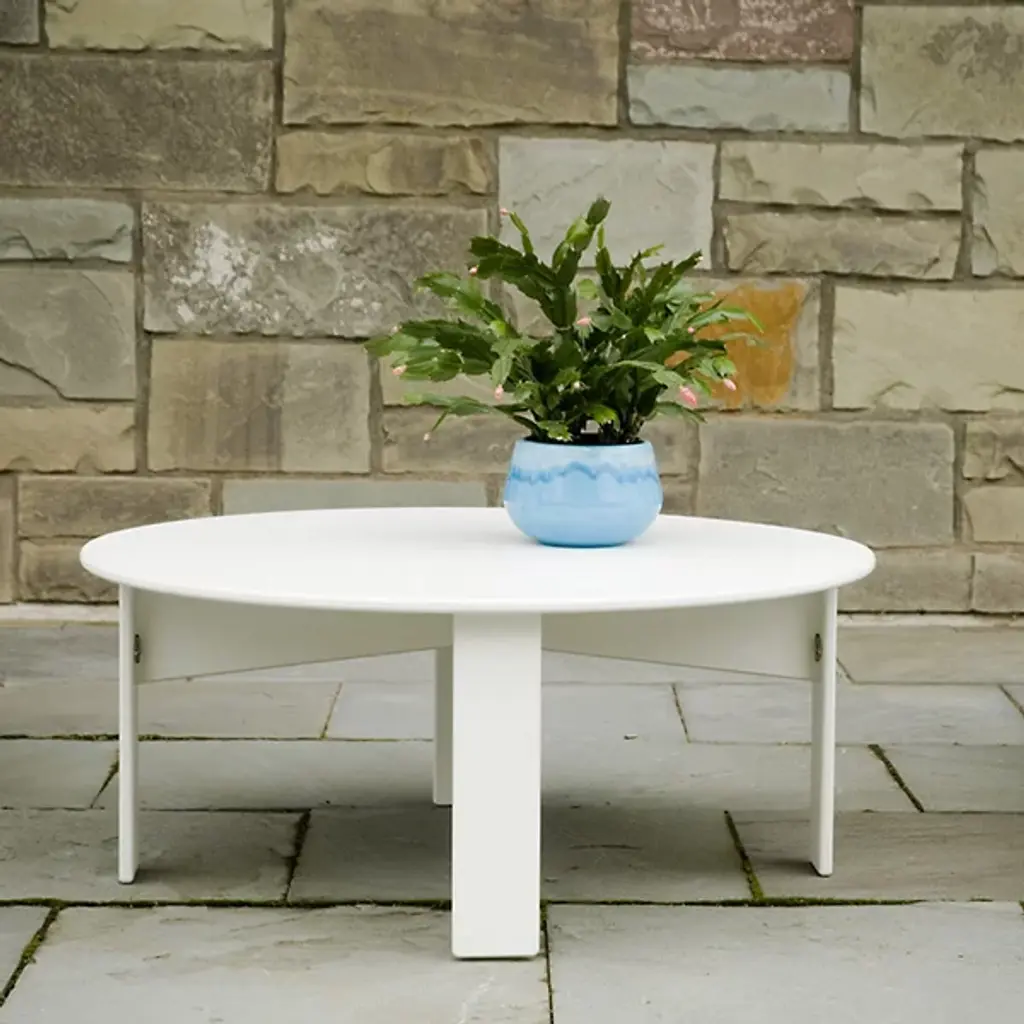 A simple, sophisticated piece designed to endure for seasons to come. Create a festive, relaxed environment with the Lollygagger Outdoor Round Cocktail Table from Loll Designs anchoring your arrangements outdoors. This piece not only satisfies guests, but it also satisfies mother nature. Its high-density polyethylene material is made using 152 reclaimed milk jugs (High-density Polyethylene (HDPE). Through harsh rain and sun, this piece keeps its shape and its deep color. A handsome modern design based on geometry makes this a versatile piece fitting across a range of home styles. The circular tabletop offers plenty of space for thoughtful ornamentation and refreshments.
