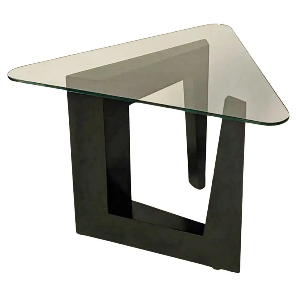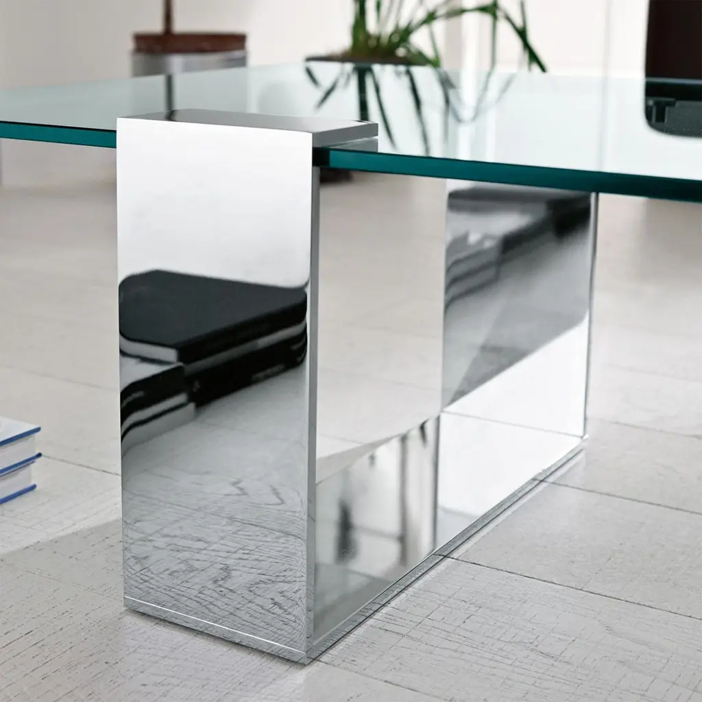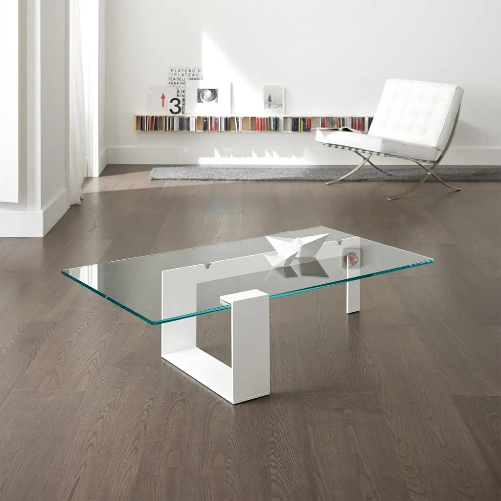 Coffee table longarm with stell base in black lacquered finish and with temperedclear glass top, 12mm thickness.Also available with base in white lacquered or in chrome finish, on request.