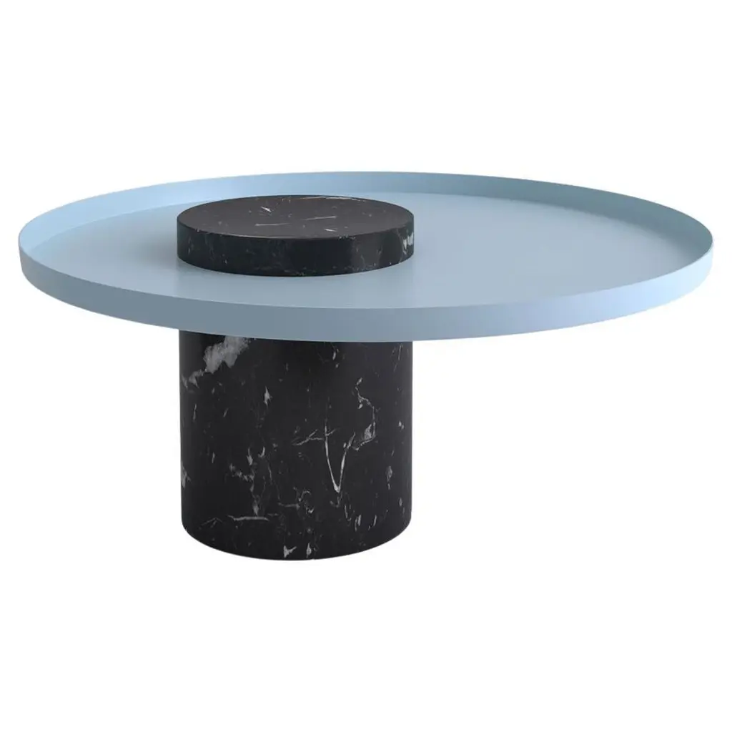 Low white marble contemporary guéridon, Sebastian HerknerDimensions: D 70 x H 33 cmMaterials: Pele de Tigre marble, yellow metal trayThe salute table exists in 3 sizes, 4 different marble stones for the column and 5 different finishes for the tray for a virtually endless number of configurations. In addition, salute can be made bespoke with special colors materials and stones.Salute is a family of tables mixing marble and metal for a high visual impact. As an occasional table, Salute is the perfect companion to your iconic armchair or next to a comfy sofa, with its clean lines and yet strong personality and impact. As a combination of tables, it is a sculptural coffee table that you can customize and adapt both in dimensions and colors.Salute is a family of guéridon tables.Each element can be used alone or combined together to play with different heights and formats as well as combinations of materials. The strong presence of the marble columnis lightened by the suspended shape of the metal tray.Sebastian Herkner is the rising star of German design. He collaborates extensively with the best Italian and German brands (Moroso, ClassiCon,..) with product that share an tasteful and rigorous simplicity, with a focus on materials and textures.