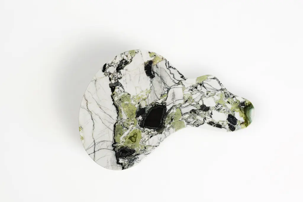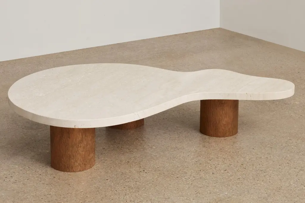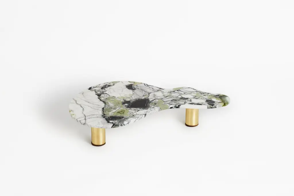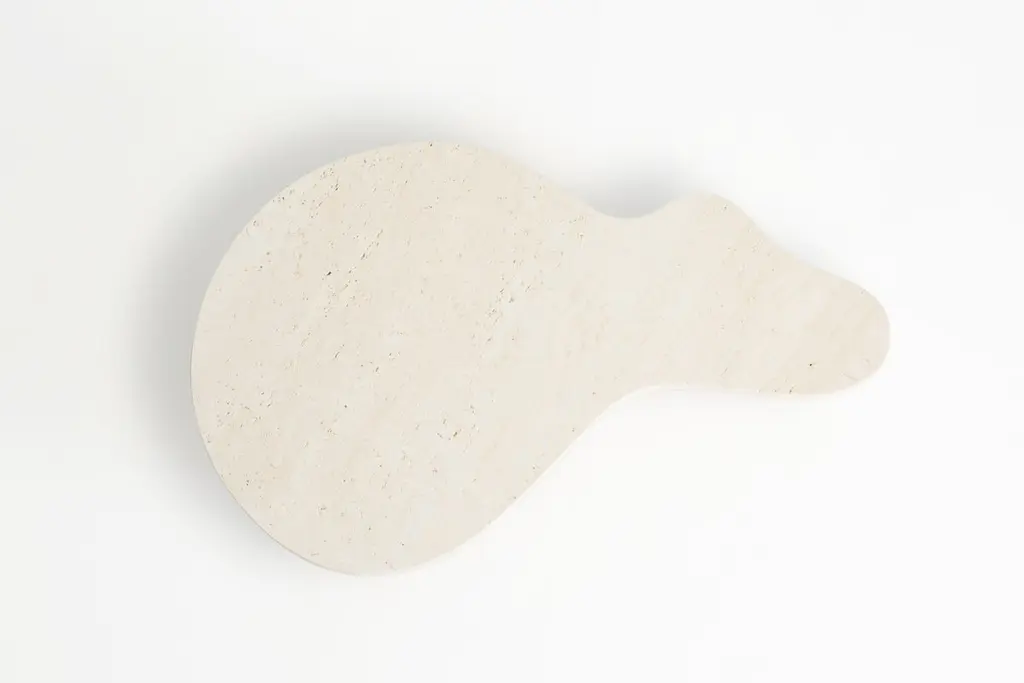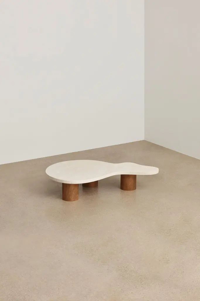Luca coffee table large by Umberto Bellardi RicciDimensions: D 55” x W 34” x H 13.5 inMaterials: Travertine, bronze legs.Umberto Bellardi Ricci is an Italian sculptor and architect based in New York City, practicing across London, Mexico, and New York. His work revolves around the interplay of art and design while exploring the spatial aspects of sculpture and social sciences through the medium of architecture. Umberto initially started with geometric abstraction largely interpreted in cast concrete, influenced by his Japanese mentor and Mexican modernism, as he founded an acclaimed sculptural project in Las Pozas, the surrealist garden in central Mexico. Since he relocated to New York, he has been focusing on a series of folded steel and brass sculptures, that often incorporate reflective light sources. While he still works with abstract compositions, pairing ready-made materials with crafted wood and rubber details, his latest furniture pieces explore the dialogue between contrasting raw construction elements, such as I-beams or concrete blocks, and refined textures like marble and glass. Having taught architecture for many years at the Architectural Association in London and at the Cornell University in New York, he designed the home for Turner Price laureate Laure Prouvost in Hackney, and has recently been commissioned to make objects and furniture for Jenna Lyons’ studio in Soho.