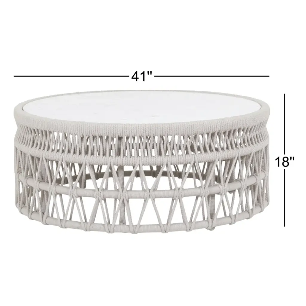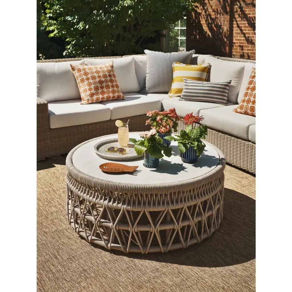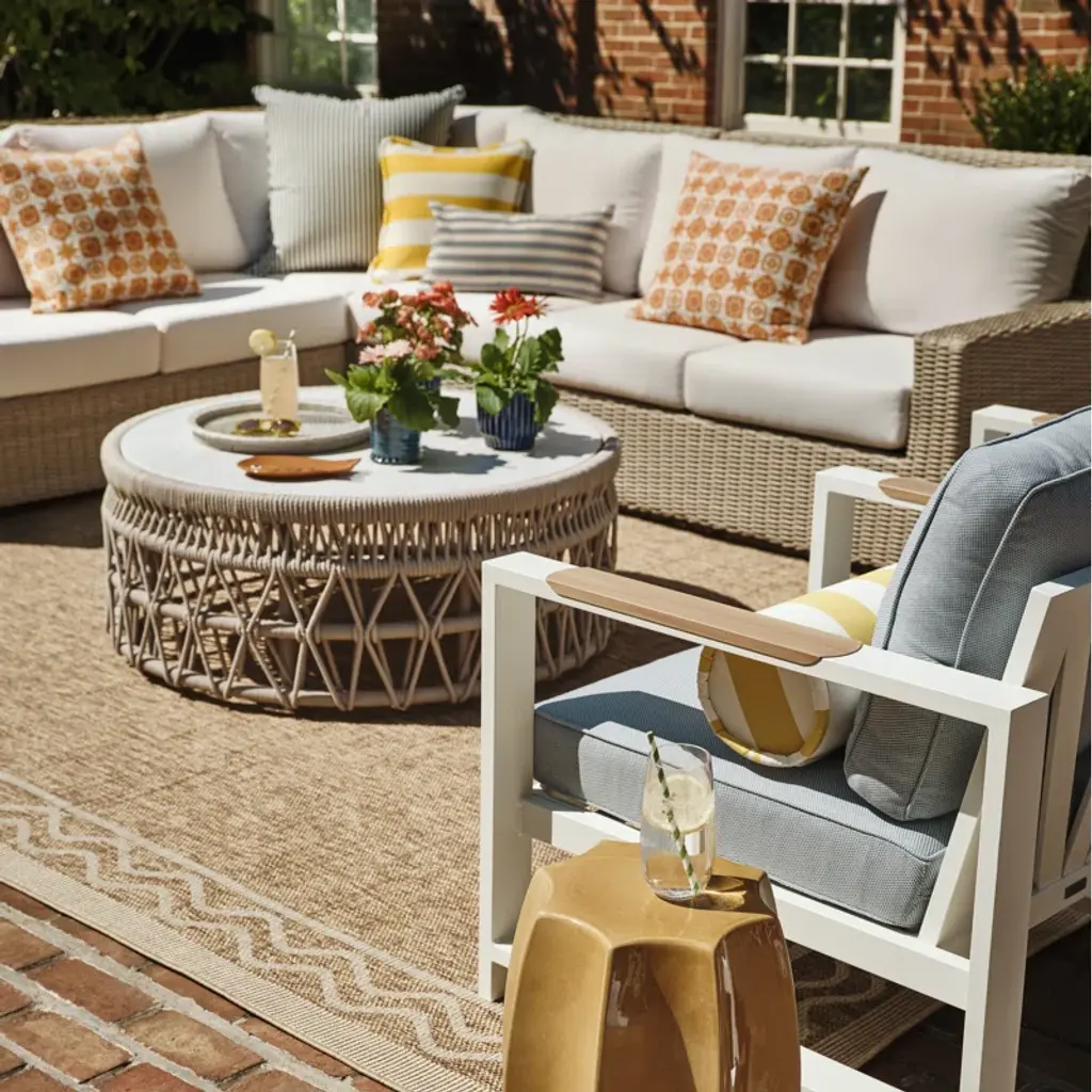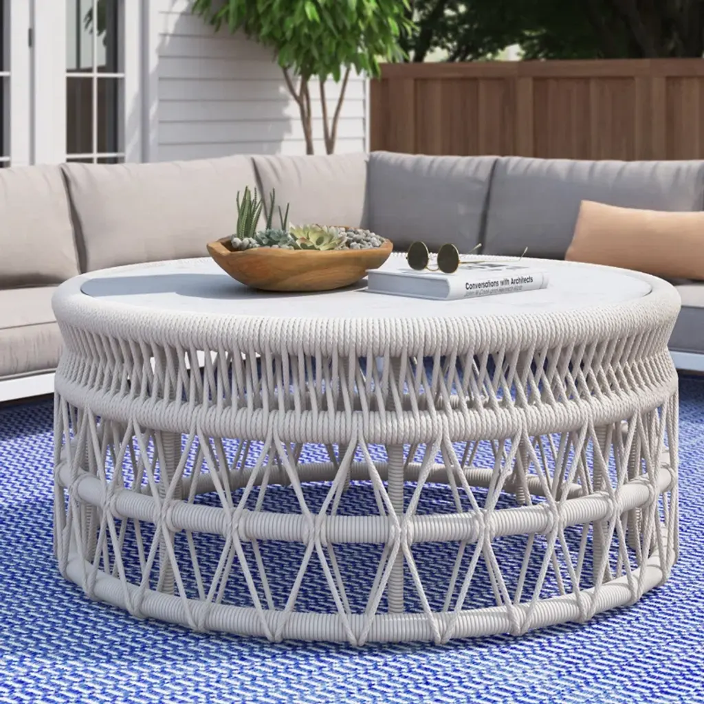 This outdoor coffee table is as pretty as it is practical: It's expertly crafted from quality materials and lets you put a spread of appetizers out on the back patio. The round Carrara-marble tabletop is supported by concrete stone for texture and density, meaning it's sure to stand up to UV rays or rainstorms rolling through. Its frame is made from aluminum that's rust- and weather-resistant, plus it's wrapped in rattan/wicker for a coastal look you're sure to love. And the best part of all? This round coffee table arrives fully assembled, so no need to grab the screwdriver.