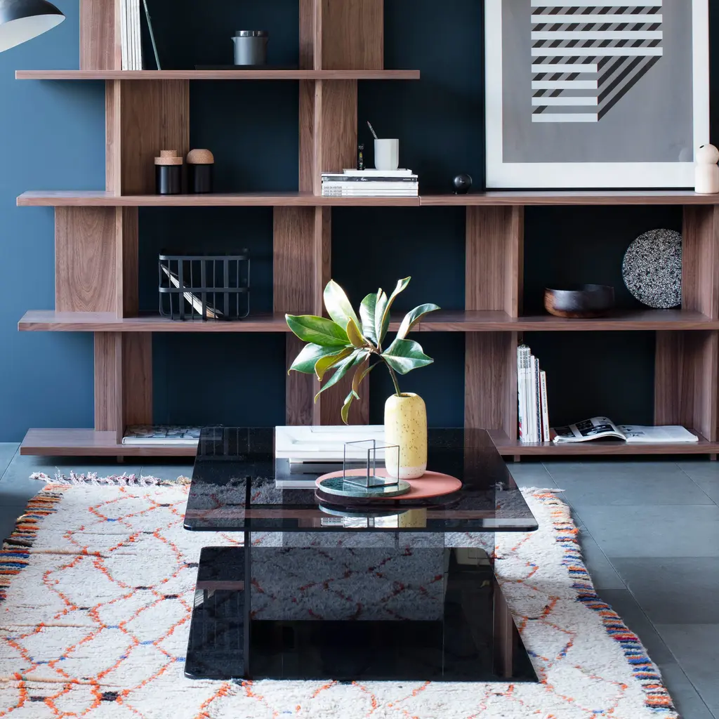 Precisely angled, the overlapping tempered-glass panels give designer Matthew Hilton’s coffee table a striking effect, with varied shadings of either bronze, smoke or clear tones. Lucent’s curved-edge top and base can withstand the demands of family life and the sectioned inner reaches also make for handy ad-hoc storage or display.