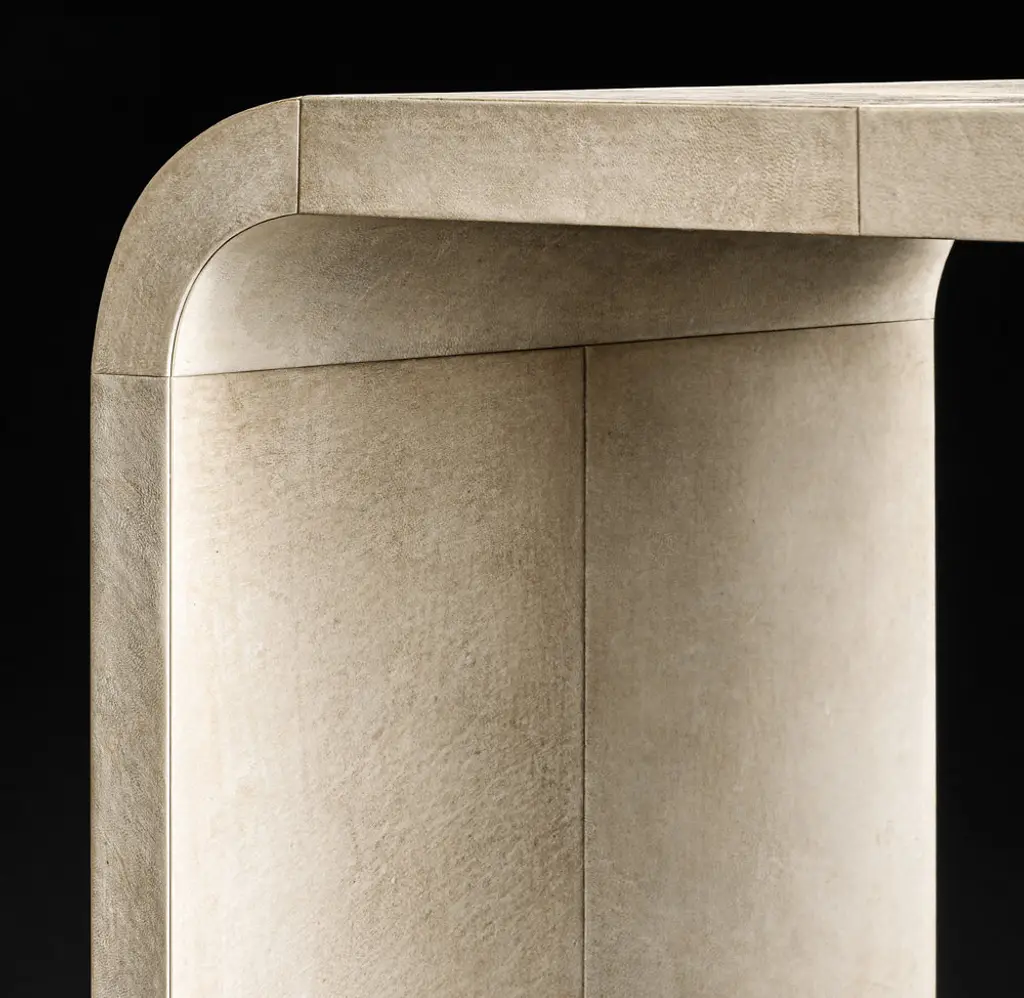 Recalling the distinctive 1930s style of celebrated French designer Jean-Michel Frank, our collection marries minimalist silhouettes and luxurious materials. The flowing lines and graceful curves of the waterfall forms are sheathed in hand-pieced parchment, a study in elegant refinement. SHOP THE ENTIRE COLLECTION