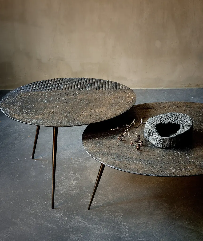 Relying on some of the oldest artistic ancestral techniques, the Luna coffee tables are created and shaped by hand by skilled artisans. Natural mineral powders and color pigments blend together to form the table’s earthy tones and unique texture.