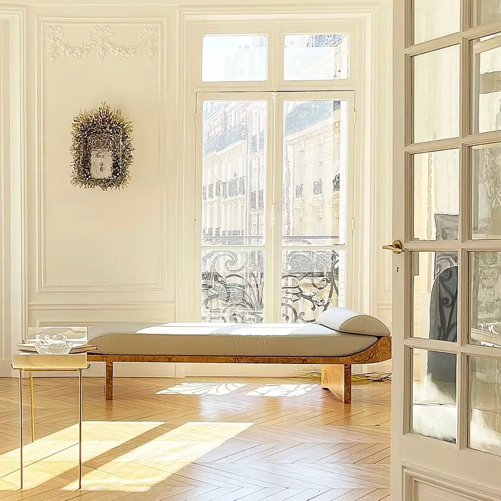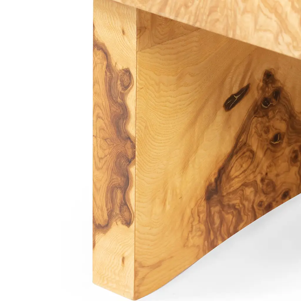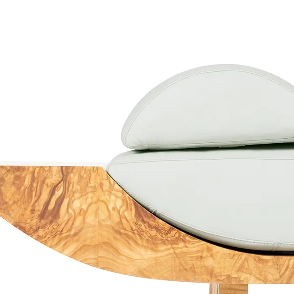 Inspired by the moon illuminating the Parisian nights at the Champs-Élysées, this stylish design by Brigitte Legeandre is brimming with timeless elegance. The raw charm of the wooden structure lies in the use of the olive briar, while flawless comfort is ensured by the plush seat with cushion that is padded with latex and flaunts a white-hued leather upholstery lending the design its distinctive ethereal character. A coffee table version is also available, please contact the Concierge.
