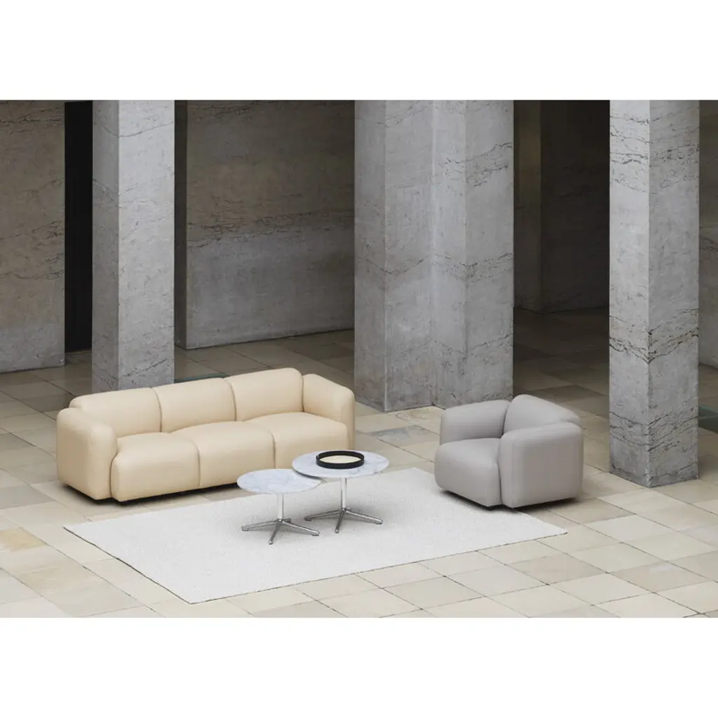 Normann Copenhagen's Lunar coffee table is a combination of clear lines and luxurious materials. Designed by Simon Legald, the table is named after its round, full-moon-like silhouette: the table's graceful, silver aluminum frame supports a round, gorgeous marble tabletop. The sleek and elegant Lunar is suitable as both a coffee table and an eye-catching side table and decorates the room either individually or in clusters of several small tables.