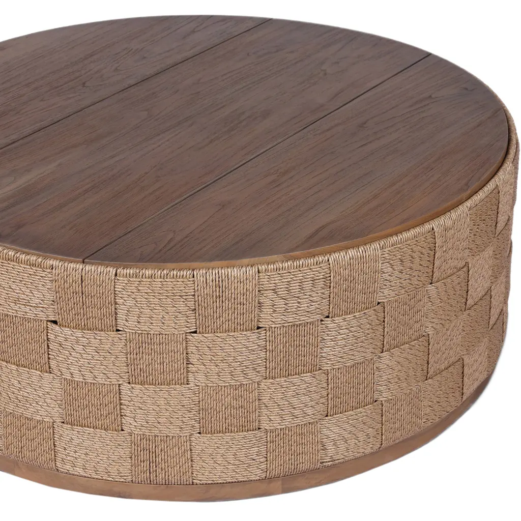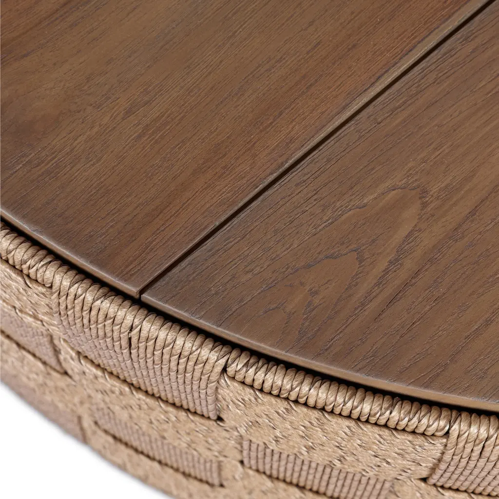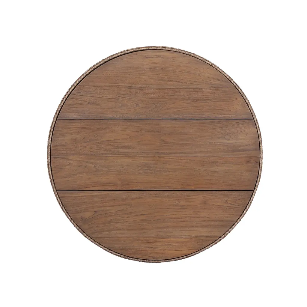 Luxen Outdoor Woven Wicker Teak Round Coffee Table, Stained Toasted Brown