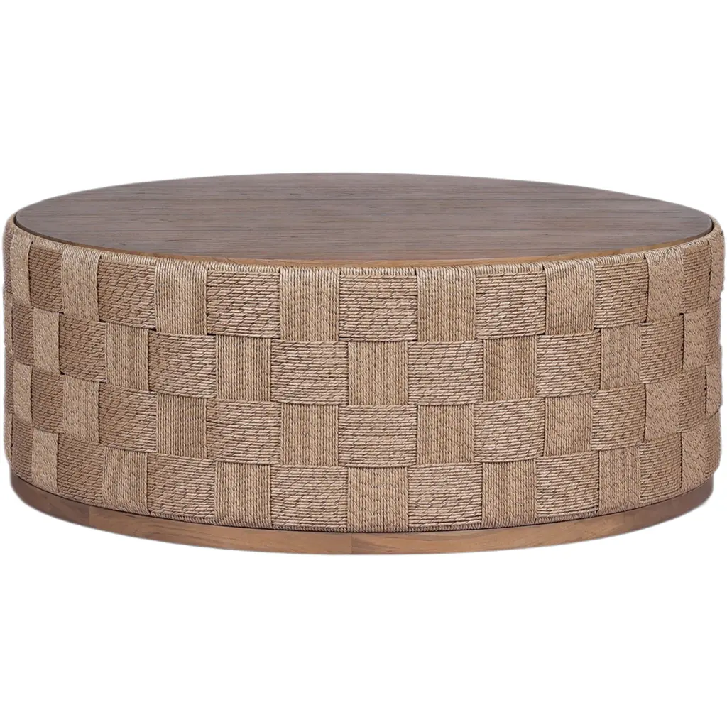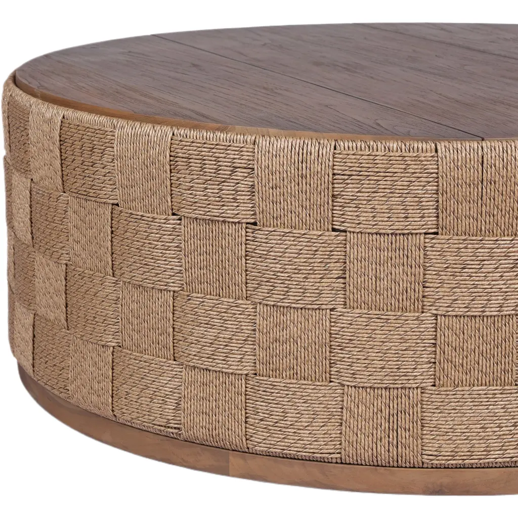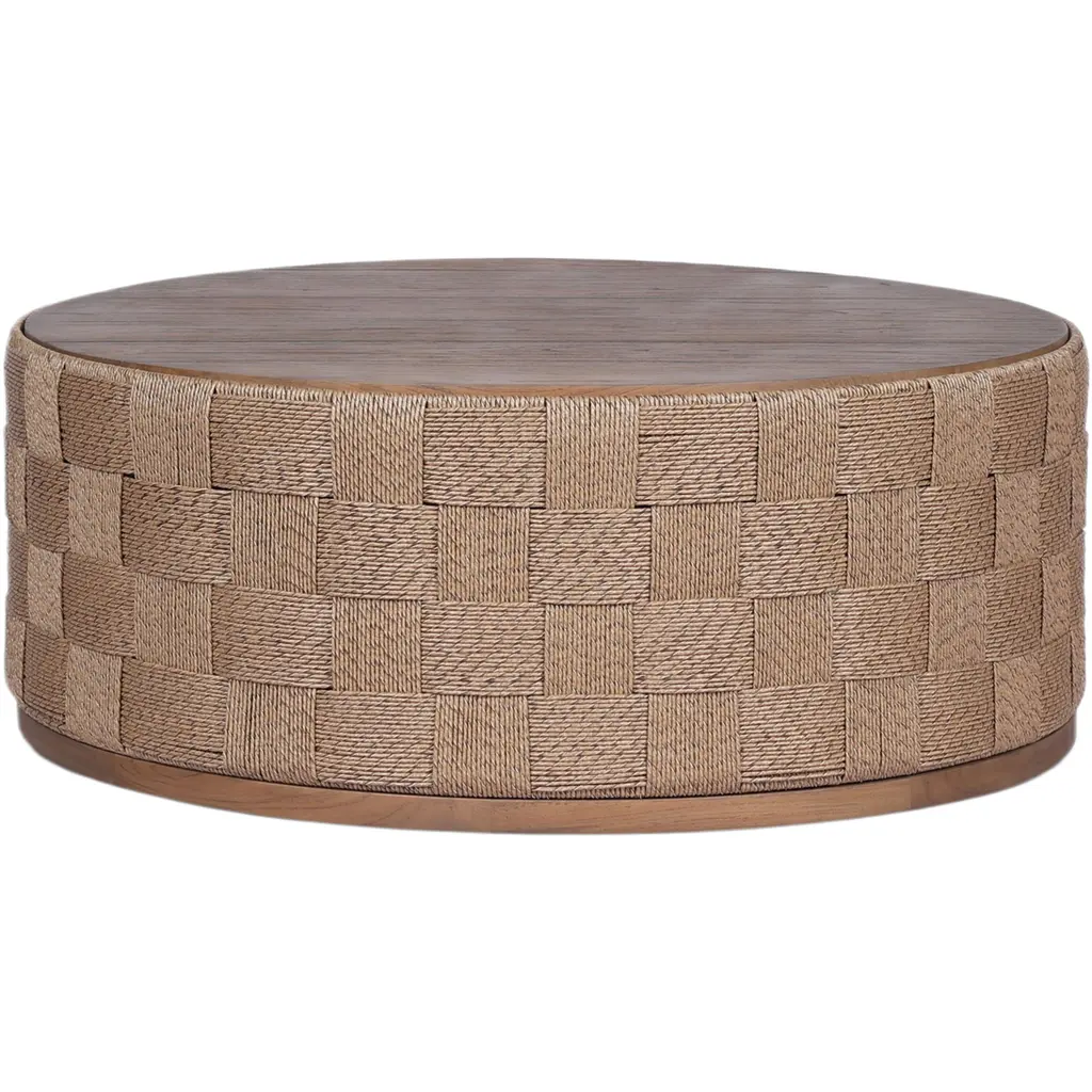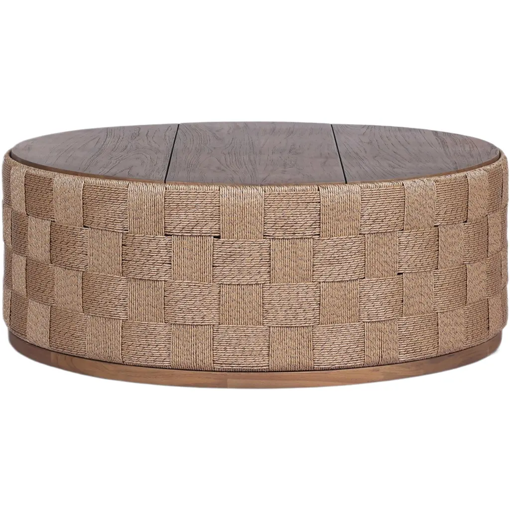 Luxen Outdoor Woven Wicker Teak Round Coffee Table, Stained Toasted Brown