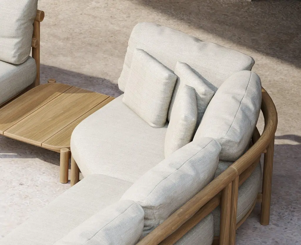 Lyora FSC Teak Wood Rectangular Low Modular Coffee Table by SNOCDimensions: D 83 x W 65 x H 20,5 cm.Materials: Teak wood.A delicate mid-century style, tempered by contemporary and eclectic incursions to create an elegant, but never flashy product. Simple lines, geometric shapes for a style that recalls functionality, but with class, to give every environment a touch of absolute uniqueness, elegance, and, why not, a pinch of history. The structure, entirely made of Teak wood, is embellished with fine workmanship to maximize its functionality and ergonomics. The collection is available in armchairs, two-seater and three-seater sofas with compact dimensions, as well as a modular unit featuring enveloping lines.SnocSince their foundation in 2004, SNOC’s history has been interwoven with that of international design. Each chapter written with care, each product reflecting its passion. The company understands that a real story exists behind each object and behind that story, a real person desiring something more. Their ever-developing methodology focuses on defining the core of a brand and utilizing those characteristics to help nurture its soul, aiding in forging real connections. This approach , results in their unique “work in progress” style: original, versatile solutions that in their signature blend of sound, vision and design best-suit every environment and situation, arousing a range of emotions on a daily basis as well as standing the test of time.Driven by functional research, an inclusive project and product culture, and deep care for the environment, we exist as the timeless yet present essence of outdoor furniture design elevating private and public space a like with thoughtfully presented, endlessly adaptive creations.