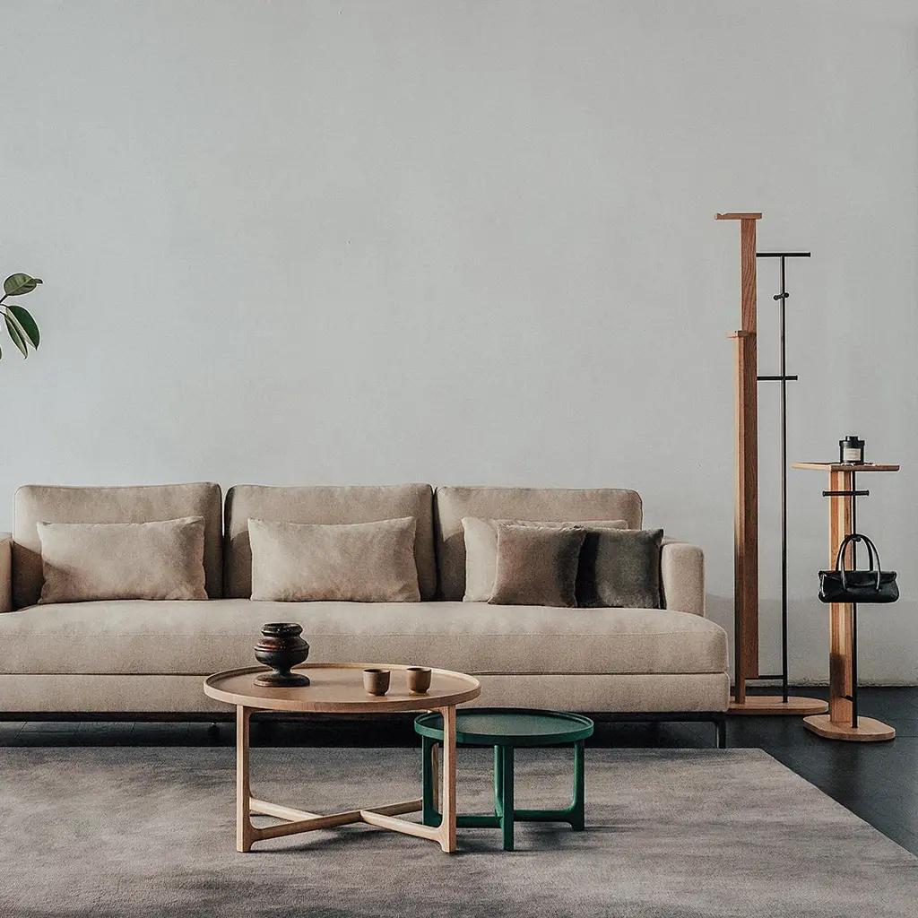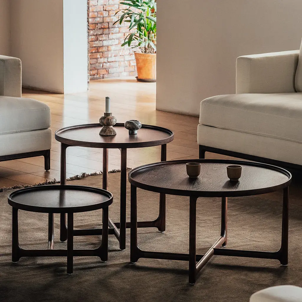 The Lyrical collection is an homage to the artistry of woodcraft. At first glance the round side tables are deceptively simple, a solid wood top with a wooden structure support. Details such as the subtle curvature of the edge profile, the foot that slightly elevates the frame, the asymmetrical offset of the secondary legs, the lip on the edge of the table top - these reveal a certain level of craftsmanship and bring a touch of sophistication. Along with a selection of color finishes and sizes, the minimal yet refined design makes the lyrical coffee table an everyday table for many settings: commercial or domestic, casual or luxe, playful or neutral.