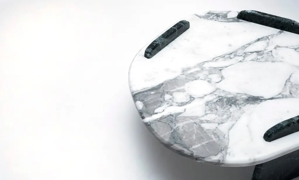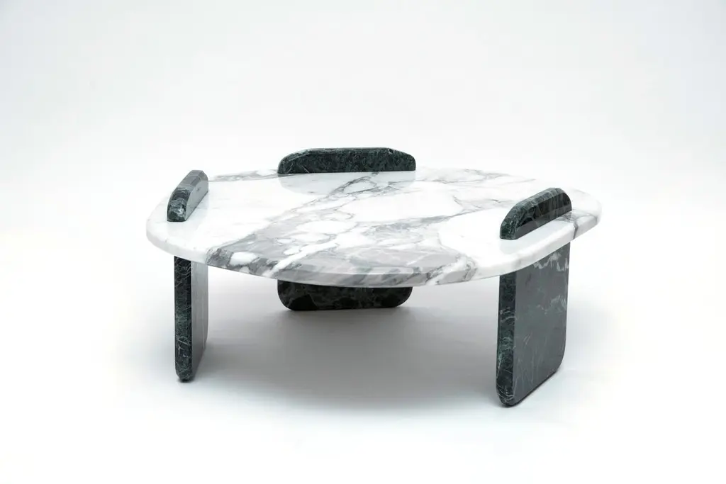 M-Table by Thomas Trad.2018Dimensions: L 90 x W 80 x H 30 cm.Materials: Arabescato marble top, Tinos green legs.Marble coffee table.Thomas Trad is a product designer from Beirut. An alumnus of London's prestigious Central Saint Martins, he worked with world renowned studios Fredrikson Stallard and Michael Anastassiades before returning to Beirut in 2016 to launch his own Design Studio.His design aesthetics comes from a fascination of manufacturing processes, craftmanship and the beauty of materials.