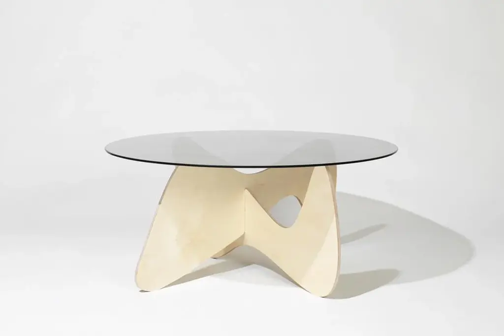 With an ode to Noguchi, the Madeira table pairs modern production techniques and an expressive, elevated form. The table is made in the U.S. and available in a variety of materials and colors, from wood to acrylic and glass. Dimensions: 15"H x 36"W Additional Options Top Tier: Clear glass, bronze glass, rose glass, smoked glass, mirror, bronze mirror, rose mirror, or smoked mirror. Bottom Tier: Birch, black varnish, or white varnish Please email hello@ivyhome.com for custom orders. Allow 6 weeks for production.