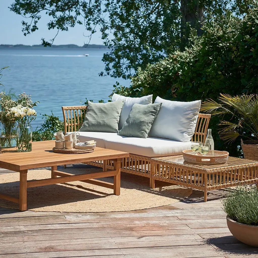 Our new Maggie modular sofa adapts to your outdoor needs. Use it as a gorgeous lounge sofa or create a cozy corner in the sun for two. With its three different modules – corner, center and pouf – Maggie Modular Sofa has endless combination possibilities. The pouf module can be used with cushion or glass tabletop that transforms it into a practical side table.