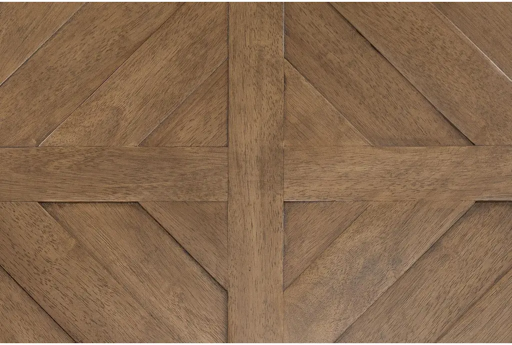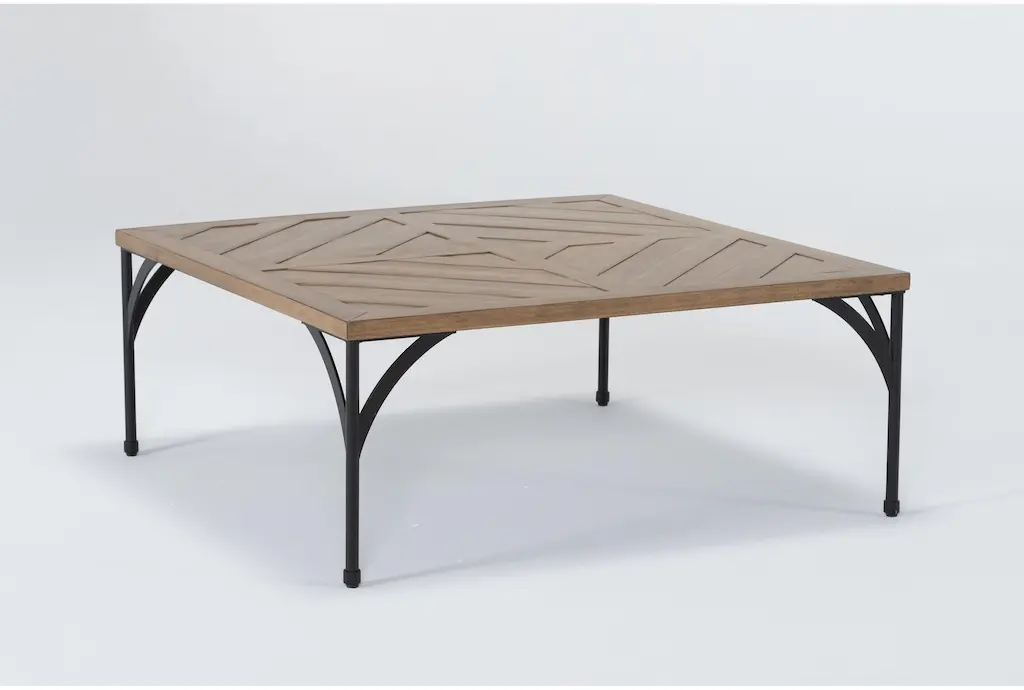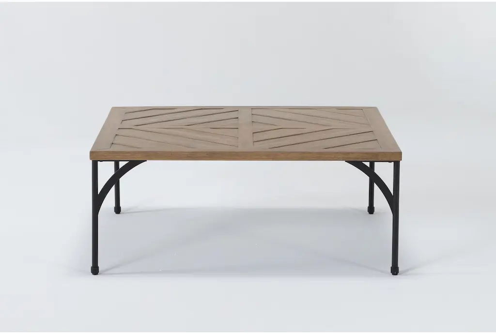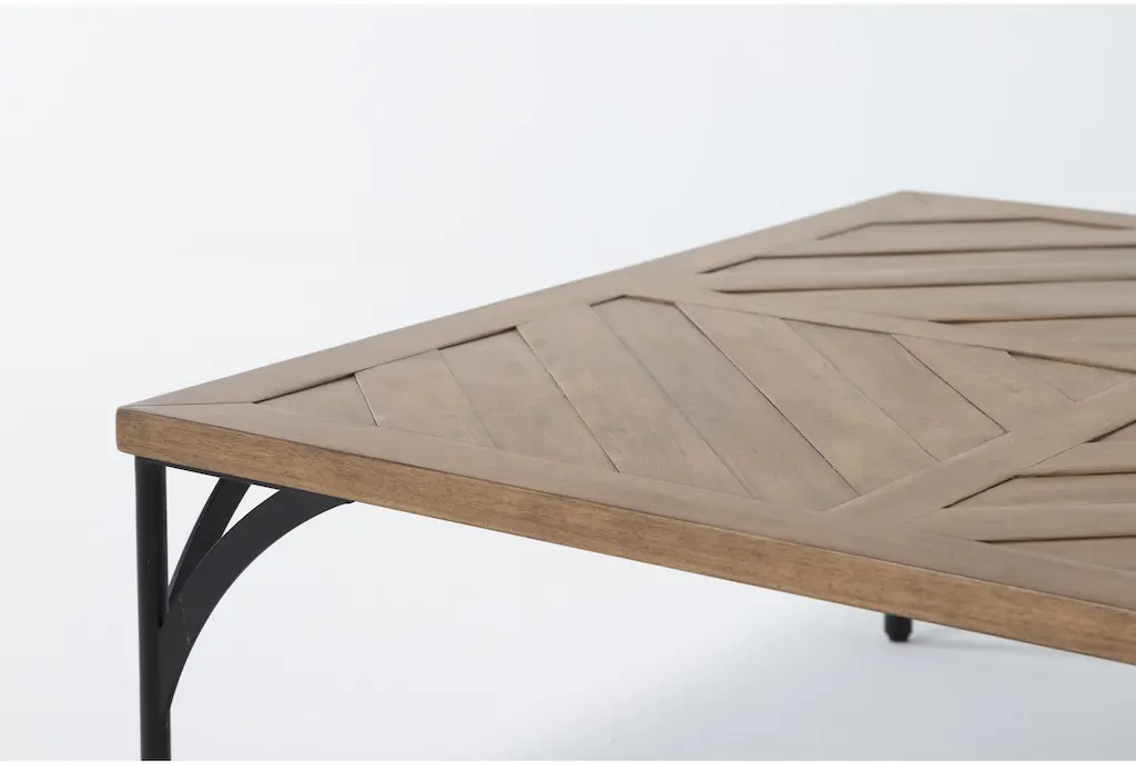 Wood and metal pair to create an industrial meets rustic look with the Whitaker coffee table from Magnolia Home by Joanna Gaines. Matte black metal legs and a parquet-designed finish give this table a storied look, while its square shape pairs well with sofas and sectionals alike.