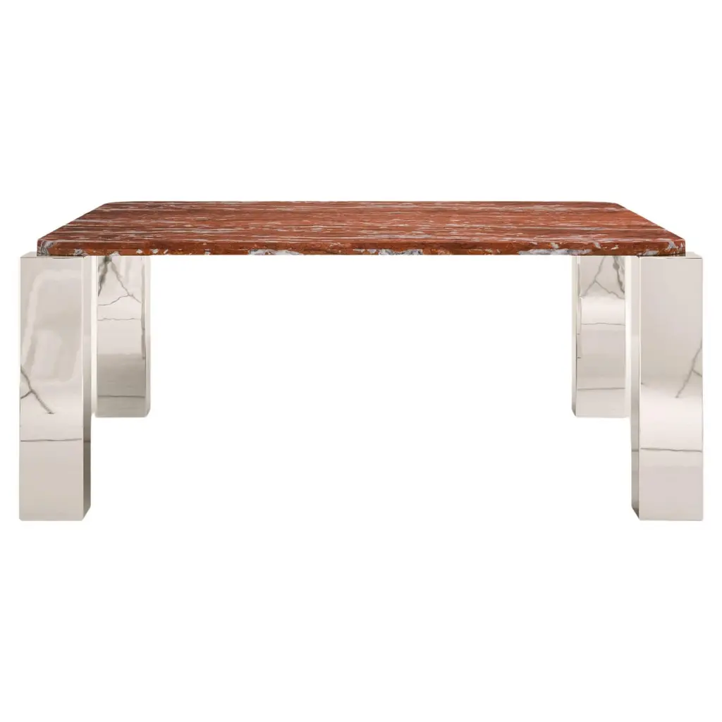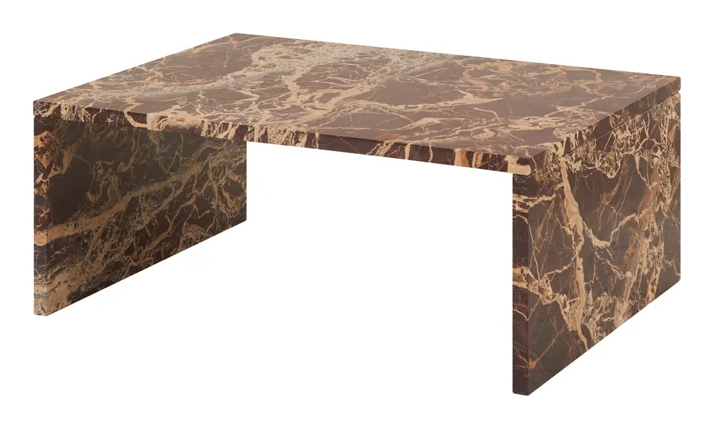Small in scale but monumental in style, our Magnus Coffee Table is sure to make a statement wherever it goes. This stunning piece reimagines the simple, sleek lines of the classic mid-century waterfall design in gorgeous rosso levanto marble — a rare type of stone found in Italy’s Liguria region that’s prized for its deep burgundy hue and rich organic veining. We love the way this breathtaking material really gets to shine in that streamlined, minimalist silhouette. An iconic addition to any home, Magnus would be perfect sitting center stage in a chic modern living room, especially when paired with our matching Magnus Side Table. •natural rosso levanto marble•iron•assembly required •must be assembled in place; disassemble before moving •each is unique; variations in color and veining of natural stone should be expected Dimensions•40"W x 30"D x 16"H•275 lbs