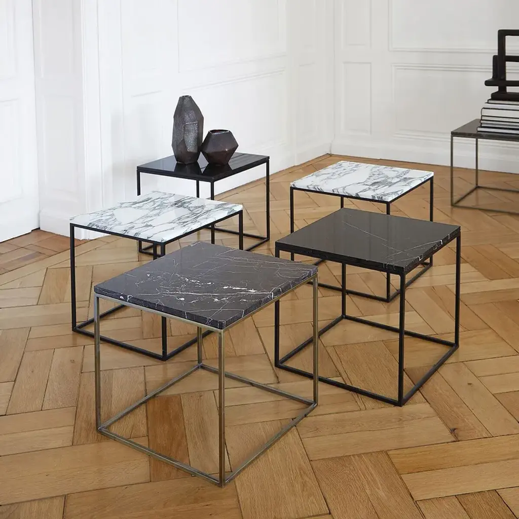 The Mahaut coffee table combines elegance and simplicity with the combination of a marble top, a noble, solid stone, and a very fine metal frame.Metal frameBlack marble top or white Arabescato marble topEach piece is unique