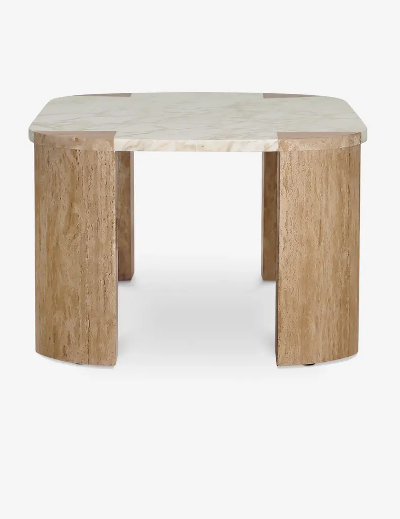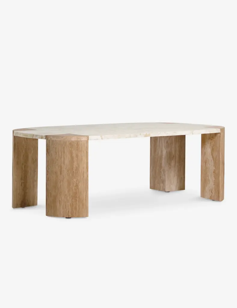 Fashion designer and creative director Carly Cushnie brings her celebrated sense of style to interiors with her first-ever line of furniture exclusively for Lulu and Georgia. The Mahoe coffee table makes a stunning statement in stone with its marble top and travertine legs. The striking mix of materials offers a warm mineral impact in an artfully modern yet timeless oval coffee table.