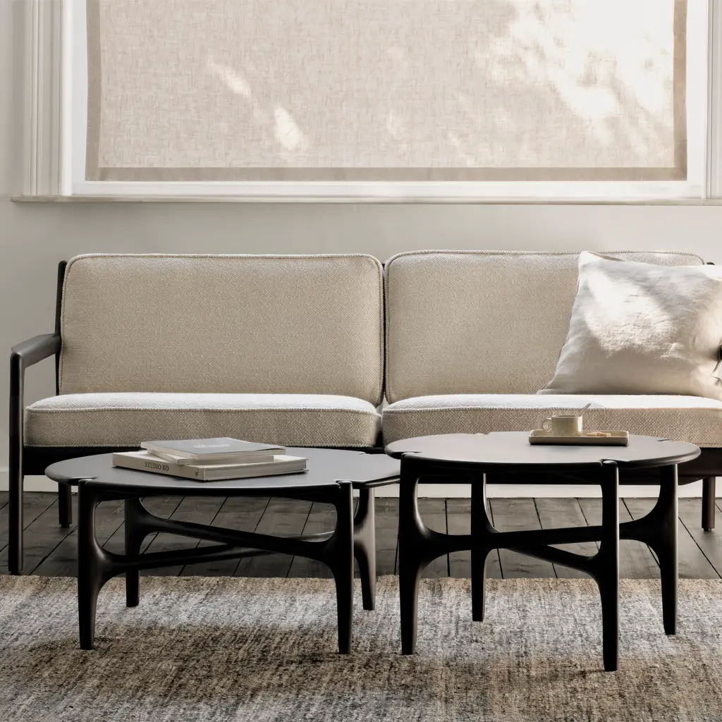 The PI collection honors nature’s design by keeping the strength, curves and lines, as nature intended. Interesting shapes are discovered in this sleek and stylish, polished imperfect, finish. Each PI item is finished by hand to ensure that the individual character of the wood is respected. The PI coffee table is a balanced piece ideal for resting beverages, light reading and other essentials. Available in two sizes, to stand alone or combined. Made from dark brown tainted mahogany with a varnish finish.