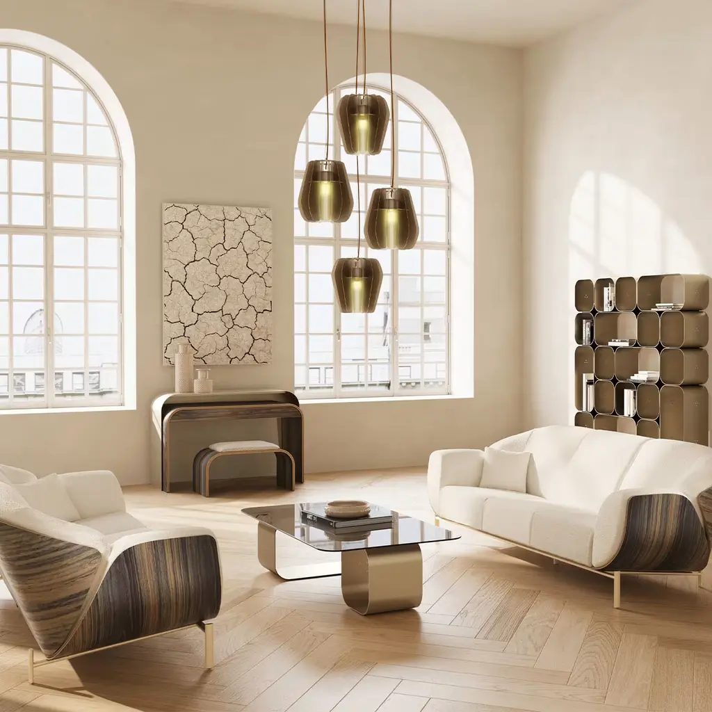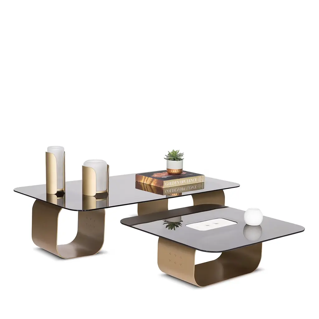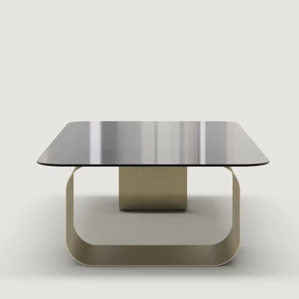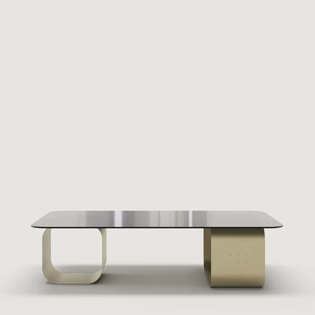 The Maiz coffee table was co-created by FROMM. X Shua’a Al. Maiz artfully blurs the boundaries between bold design and simplicity, resulting in a coffee table that embodies elegance and functionality. It is characterized by a golden steel structure and glass top. Elevate any living space with Maiz, where contemporary style meets thoughtful utility in a captivating design statement.