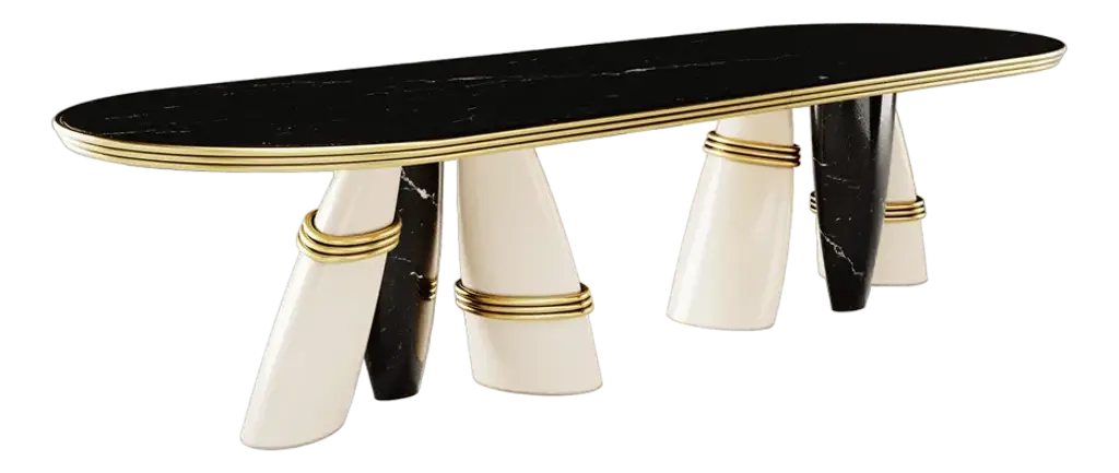 Malaga Center Table is an exquisite wood coffee table that celebrates natural materials and craftsmanship through the art of marquetry.with three large legs, a stripped-pattern apron, and a tabletop with cubist figures, Malaga Center Table is the perfect coffee table for a modern living room project. Inspired by the unconventional and surprising world of Pablo Picasso, this bird eye center table blends the 20th-century artistic movement Cubism with ancient woodwork. Malaga Center Table looks better alongside the Santiago Center Table. The marquetry coffee table is made by skilled artisans using natural materials and preserving traditional techniques and celebrates the arts & crafts movement. Dimensions:Width: 100 cm | 39.4 in – Depth: 100 cm | 39.4 in – Height: 50 cm | 19.7 in Materials:Top in Marquetry Gloss White Bird Eye; Black Bird Eye Legs in Gloss Beige Lacquer